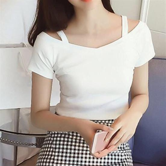 Женская футболка с открытыми плечами и короткими рукавами, летний однотонный тонкий пуловер, уличная одежда — купить товар онлайн с бесплатной доставкой по всему миру!