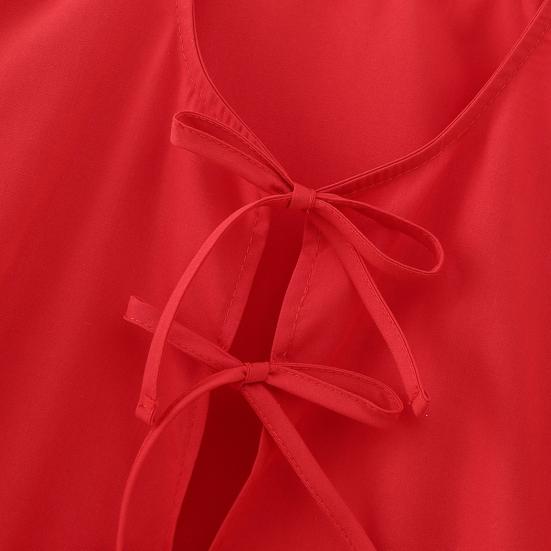 Этот топ стандартного кроя идеально подходит для демонстрации вашей фигуры. Он имеет элегантный и модный дизайн с круглым вырезом, короткими рукавами и украшением на шнуровке..