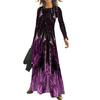 Леди Нижние юбки размера плюс длинное платье с принтом и блестками Весеннее тонкое платье макси с круглым вырезом для банкета