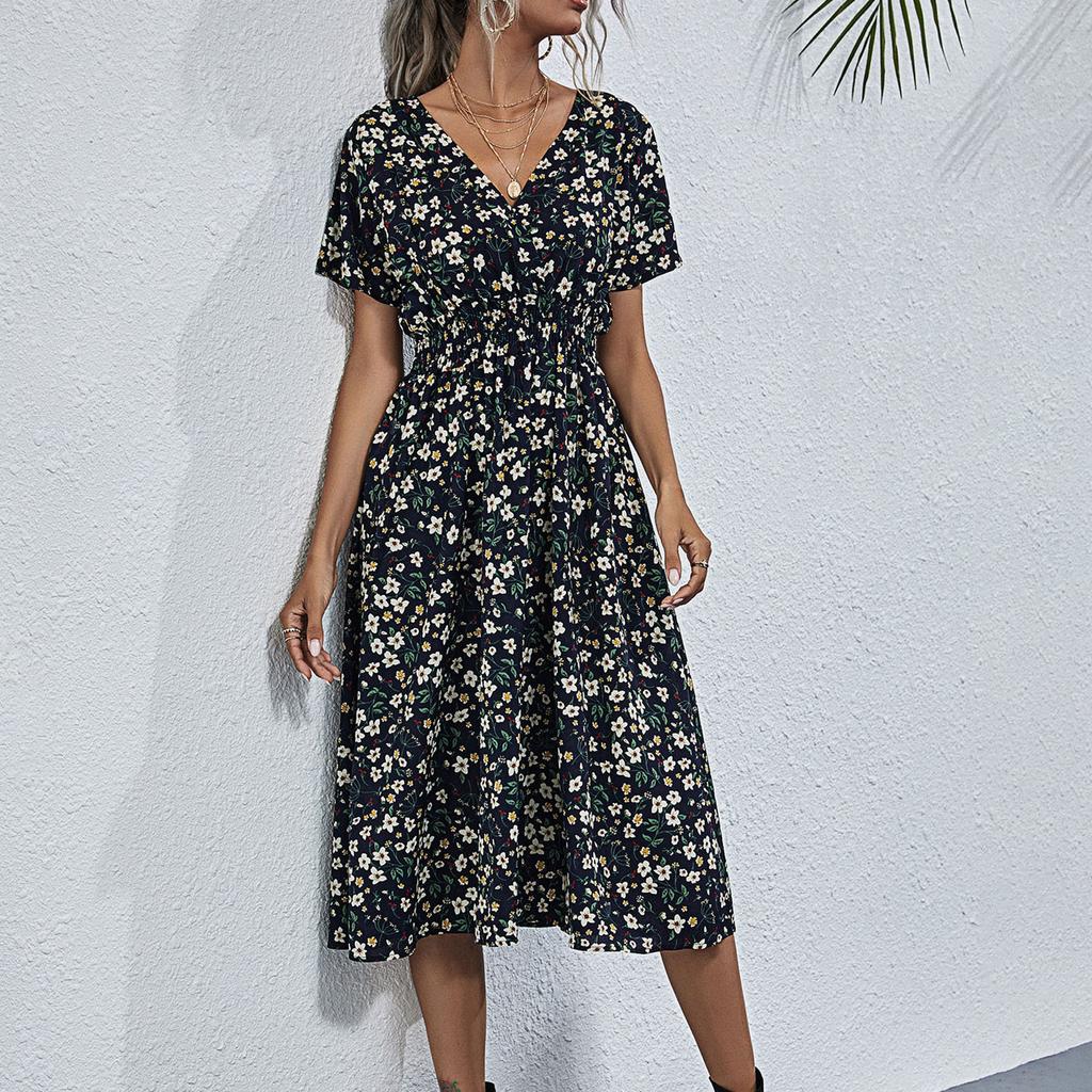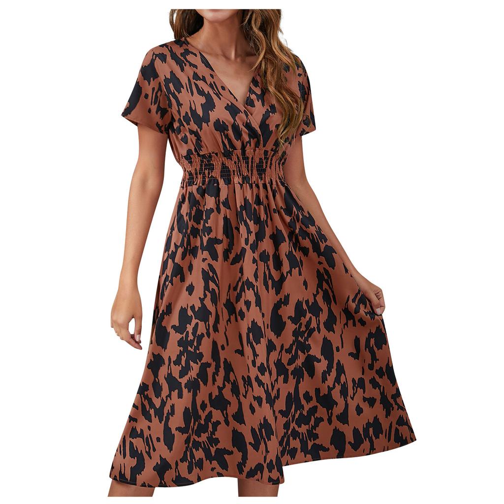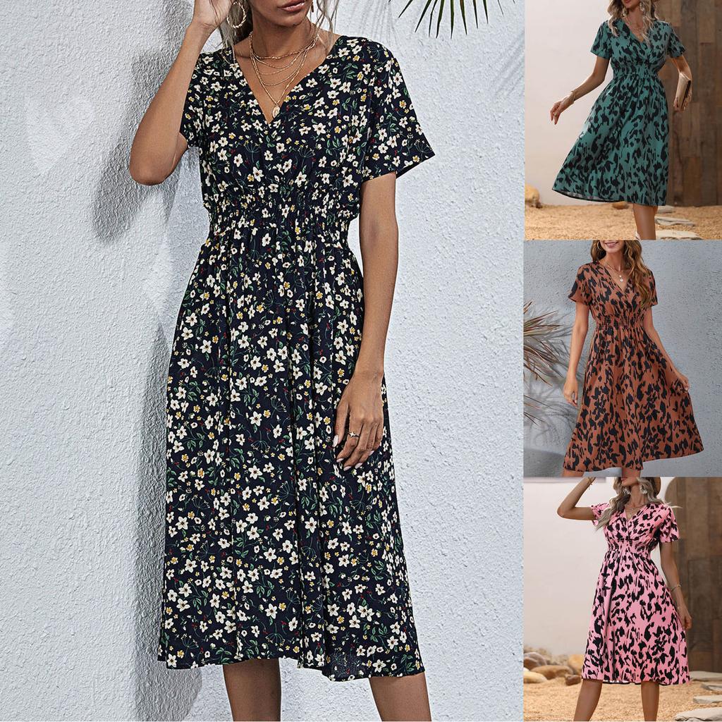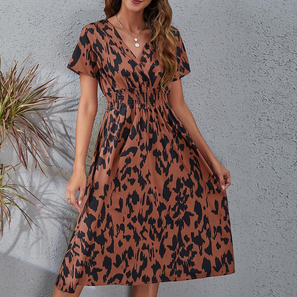 Модная женская повседневная юбка-миди с v-образным вырезом и принтом, платье с эластичной резинкой на талии