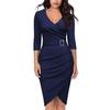 Леди Нижние юбки Плюс Размер Леди Платье Сплошной цвет V-образным вырезом Тонкое повседневное платье-футляр для повседневной носки