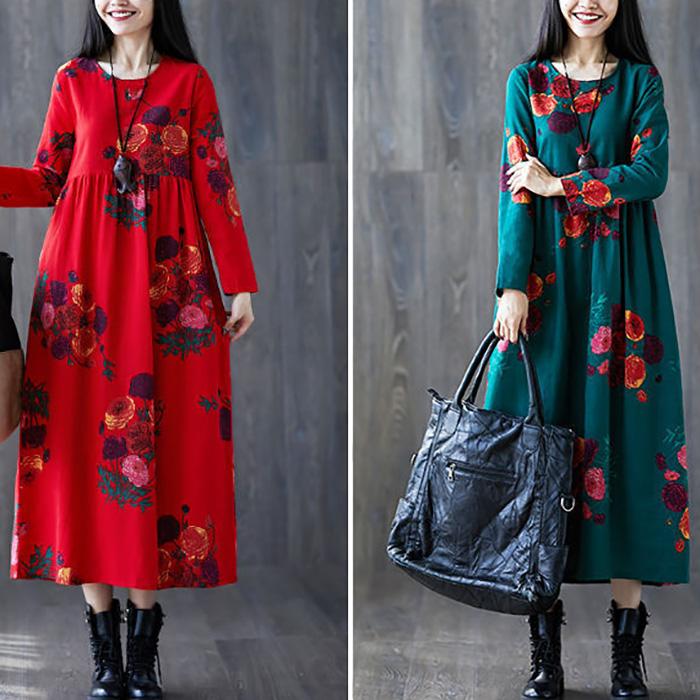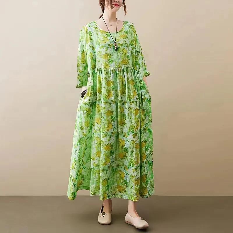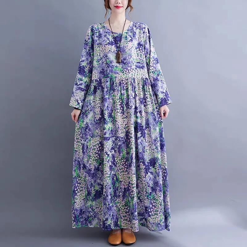 Женское весенне-осеннее платье с длинными рукавами, свободная ретро-юбка большого размера в этническом стиле с длинным принтом, новая юбка-трапеция