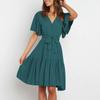 Модное женское однотонное повседневное платье с v-образным вырезом и коротким рукавом на талии — купить товар онлайн с бесплатной доставкой до всему миру!