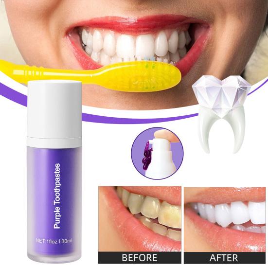 Наша зубная паста Purple-color Teeth Whitening идеально подходит для повышения яркости уже белых зубов или в качестве дополнения к процедурам отбеливания. Это идеальное решение для сияющей улыбки.. Обратите внимание, что эта зубная паста не предназначена для непосредственного использования в качестве самостоятельного отбеливающего продукта.