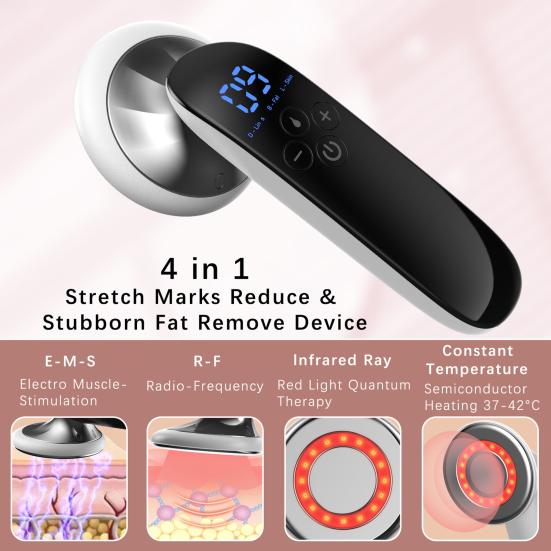Передовая технология похудения: Этот аппарат для похудения сочетает в себе силу микротока EMS, радиочастотной энергии, радиоволн и терапии красным светом, обеспечивая комплексное решение для коррекции фигуры и подтяжки кожи.. Инновационная технология воздействует на жировые клетки, способствует укреплению мышц и стимулирует выработку коллагена, что придает коже более молодой вид.