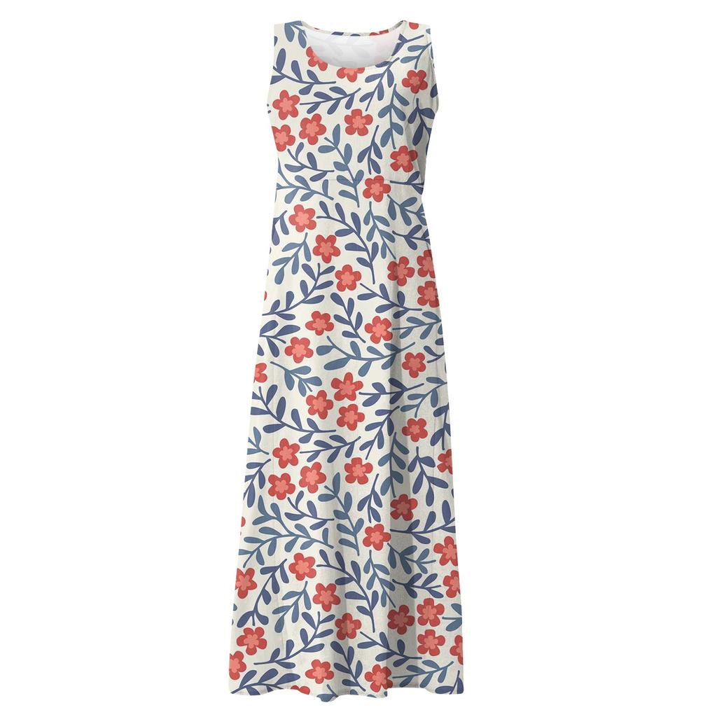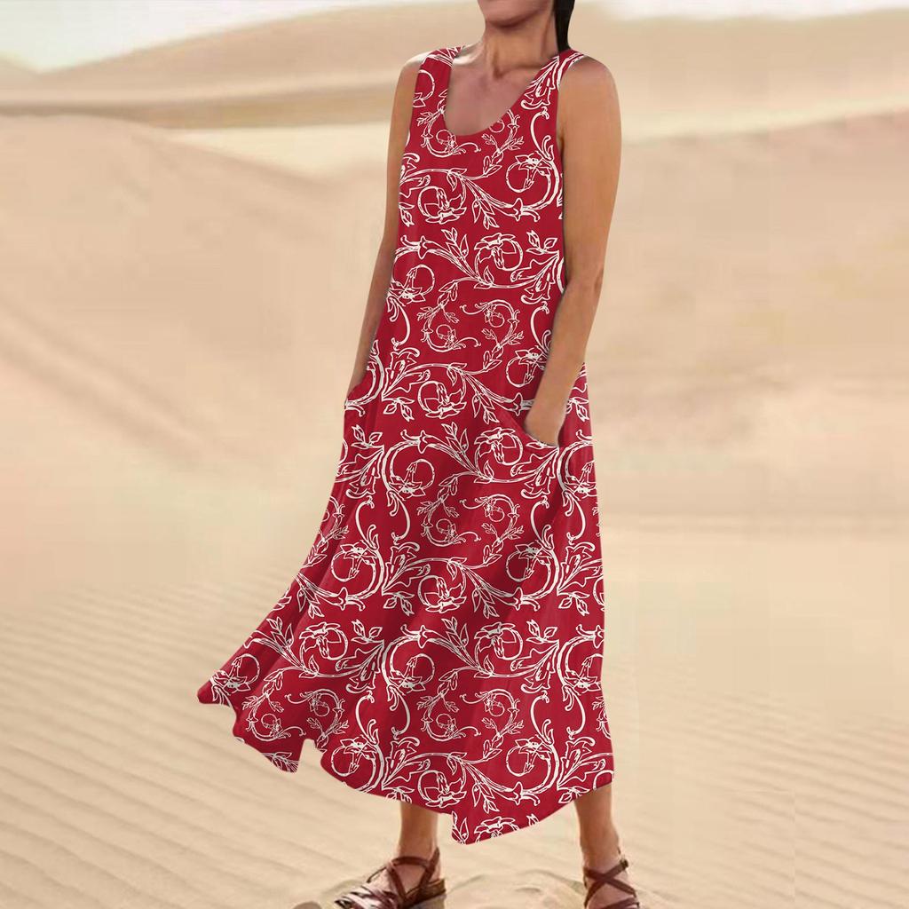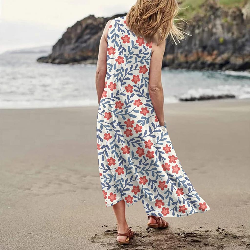 Женское повседневное удобное хлопковое карманное платье без рукавов с цветочным принтом