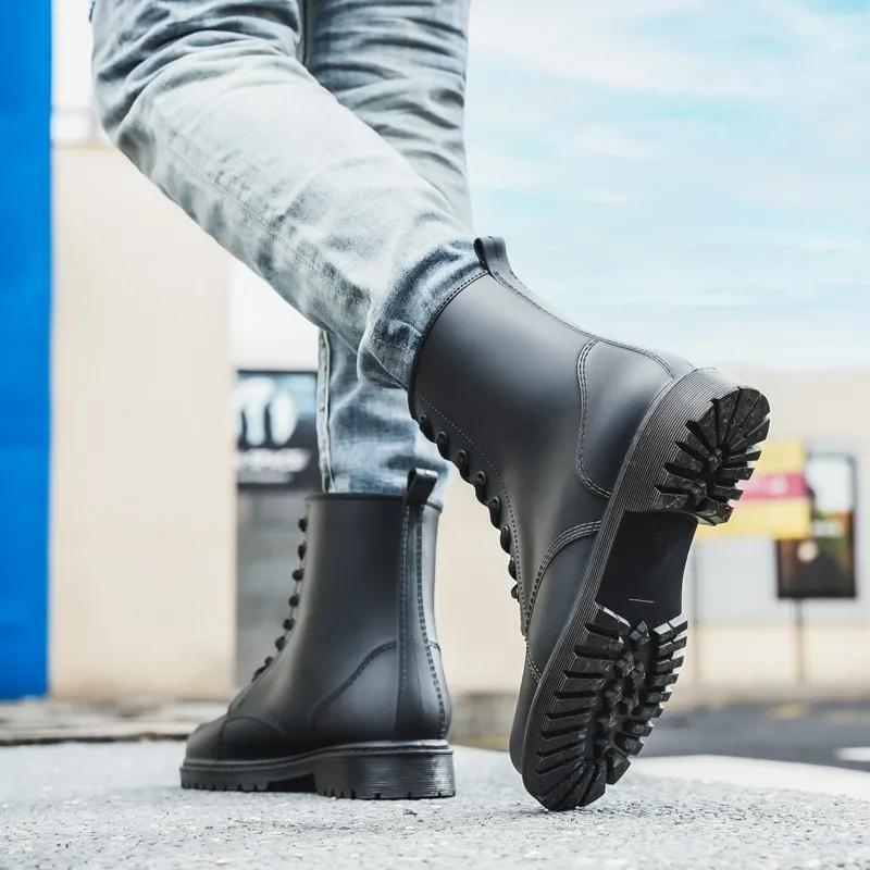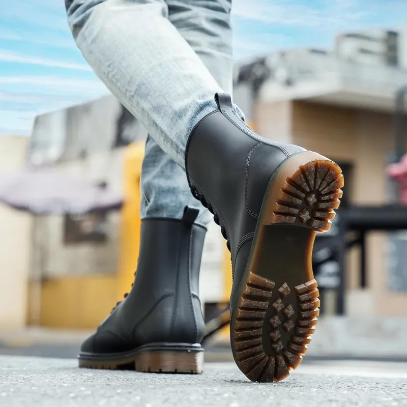 Высокие непромокаемые сапоги, непромокаемые сапоги, резиновая обувь в трубке, водонепроницаемая и непромокаемая обувь, кожаные мужские бахилы