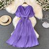 Женское элегантное плиссированное платье, летние винтажные платья с коротким рукавом и v-образным вырезом, женские трапециевидные платья миди с высокой талией