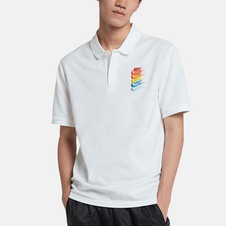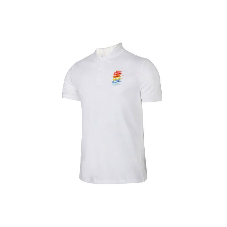 Nike Спортивная одежда Радуга Градиент Swoosh Рубашка Поло Мужские Топы Белый CI9595-100