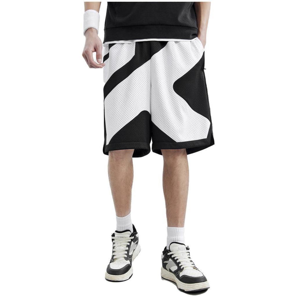 Anta Вязаные шорты с эластичной резинкой на талии и принтом для улицы, мужские брюки, базовый черный 152321218-3