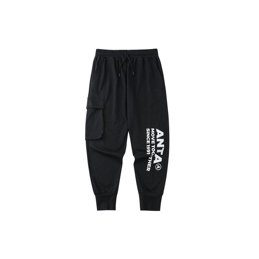 Anta Свободные повседневные спортивные штаны с буквенным логотипом, зауженные спортивные штаны для пар, унисекс, черные 952228510-2
