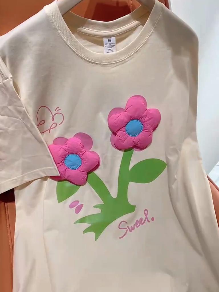 Летняя женская футболка с 3D цветочным дизайном, милая женская футболка с забавным принтом, свободная футболка с короткими рукавами и круглым вырезом