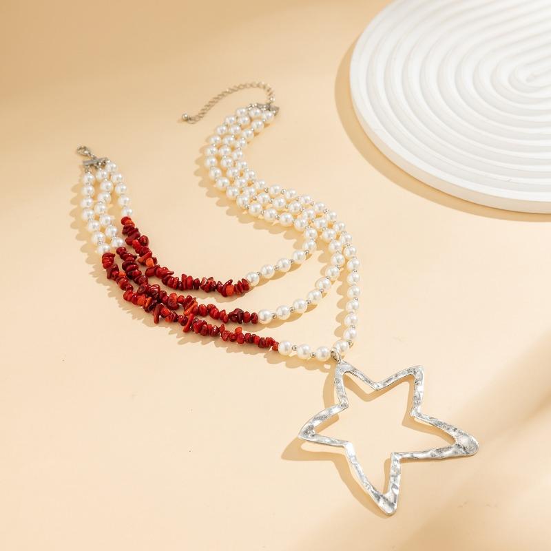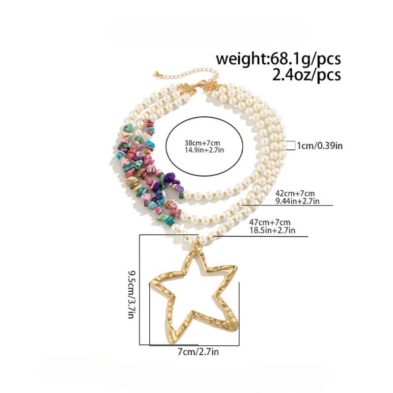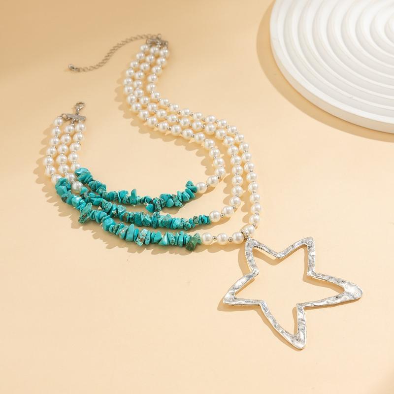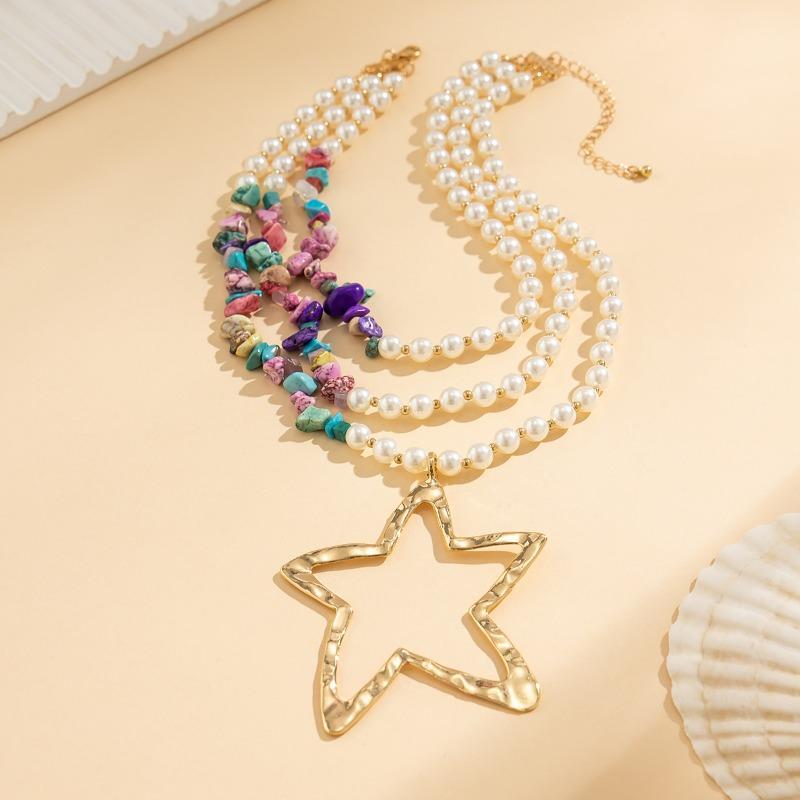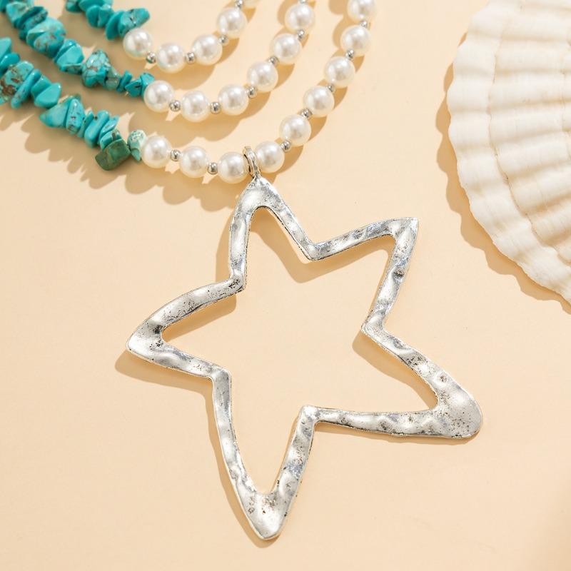 Винтажное этническое красочное бирюзовое ожерелье с подвеской в виде больших звезд для женщин, многослойное ожерелье с искусственным жемчугом, ожерелье из бисера, ювелирные аксессуары