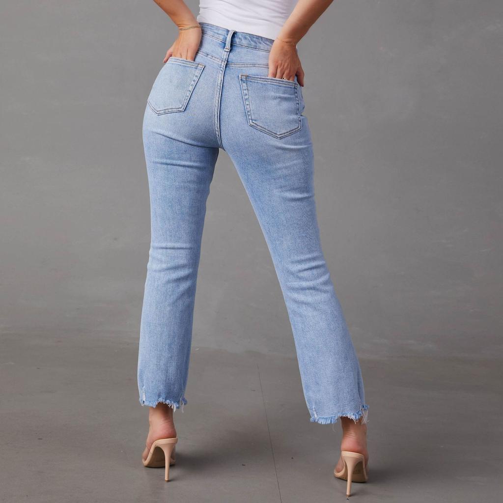 Весенние и летние женские джинсы, эластичные прямые брюки, темпераментные брюки с отверстиями для поездок на работу