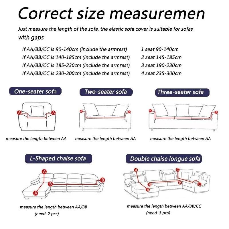 Размер диванных чехлов, которые вы выберете, должен быть на 20 ~ 30 см больше, чем фактический размер дивана. Остаточную часть можно повесить вниз, чтобы защитить боковую часть дивана или заправить под диван, чтобы предотвратить скольжение.