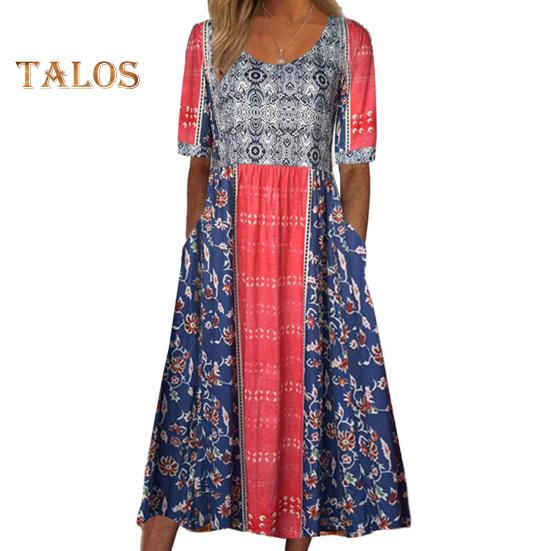 Подчеркните свой стиль с помощью этого высококачественного платья из полиэстера повседневного свободного кроя.. Удобная, мягкая и легкая ткань обеспечивает комфорт на весь день.. Это платье, украшенное шикарным богемным принтом, излучает элегантность и стиль..