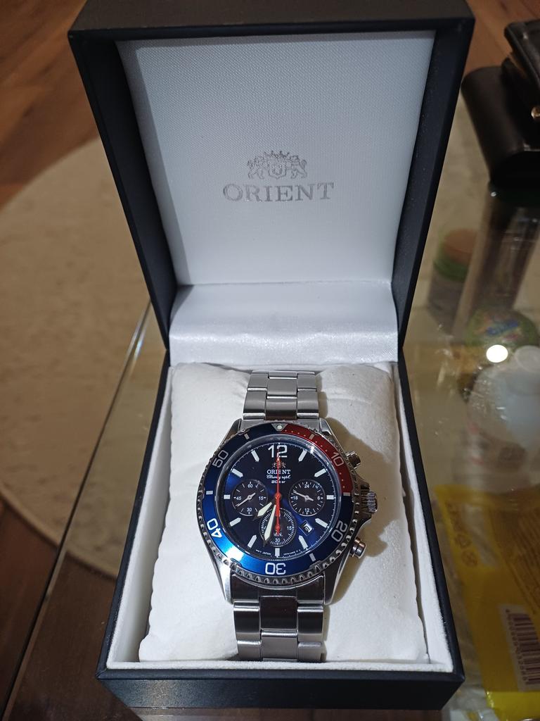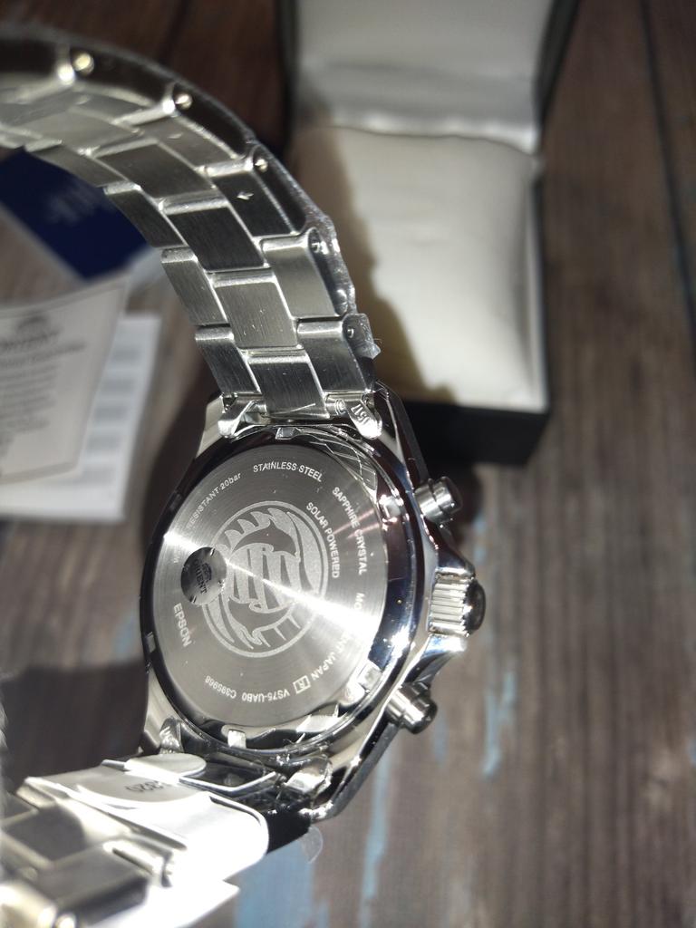 Часы понравились. Вживую лучше чем на фото. Тяжёлые. Браслет литой 22 мм в ширину, крайние звенья штампованные, пряжка штампованная, стекло - сапфир, люм - шикарный, но не долгий. Отделка корпуса, в основном, сатинирование это практично, не будут заметны мелкие царапины, браслет полностью сатанирован. В комплекте есть гарантийный талон с печатью продавца. Обратил внимание, что в разных отзывах на фото разные коробки...почему-то.