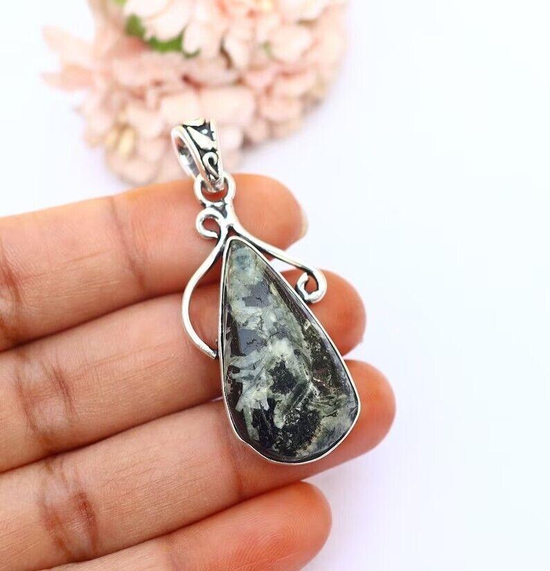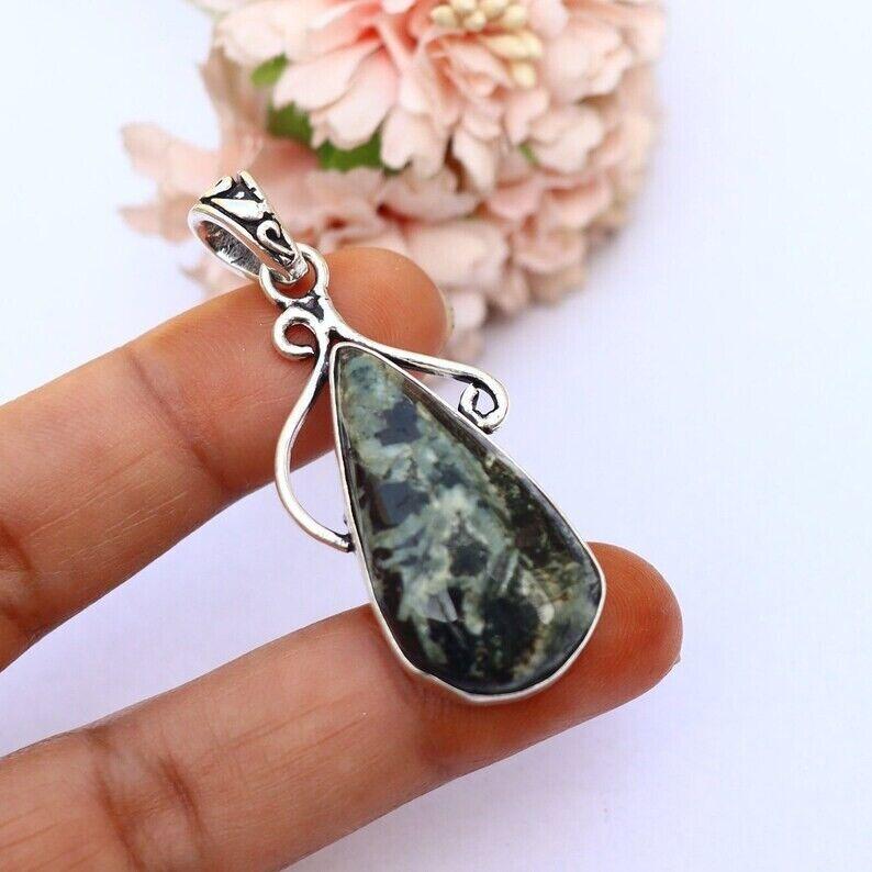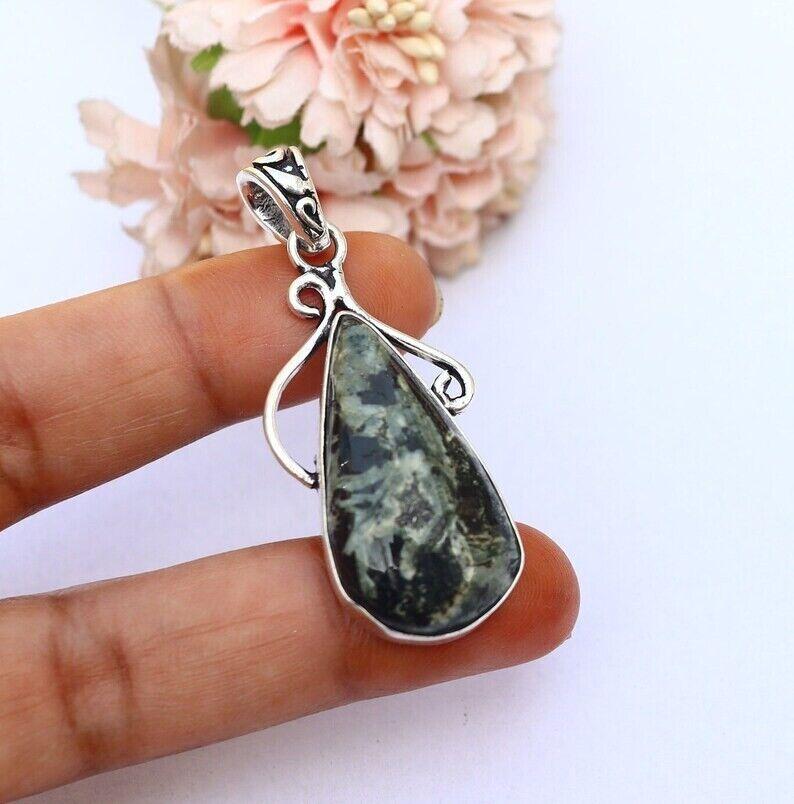 Подвеска с серафинитом/Ожерелье с серафинитом/Подвеска с зеленым серафинитом и драгоценным камнем