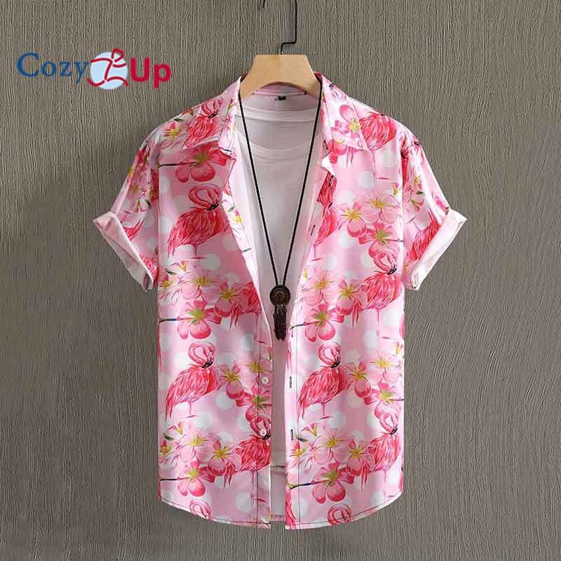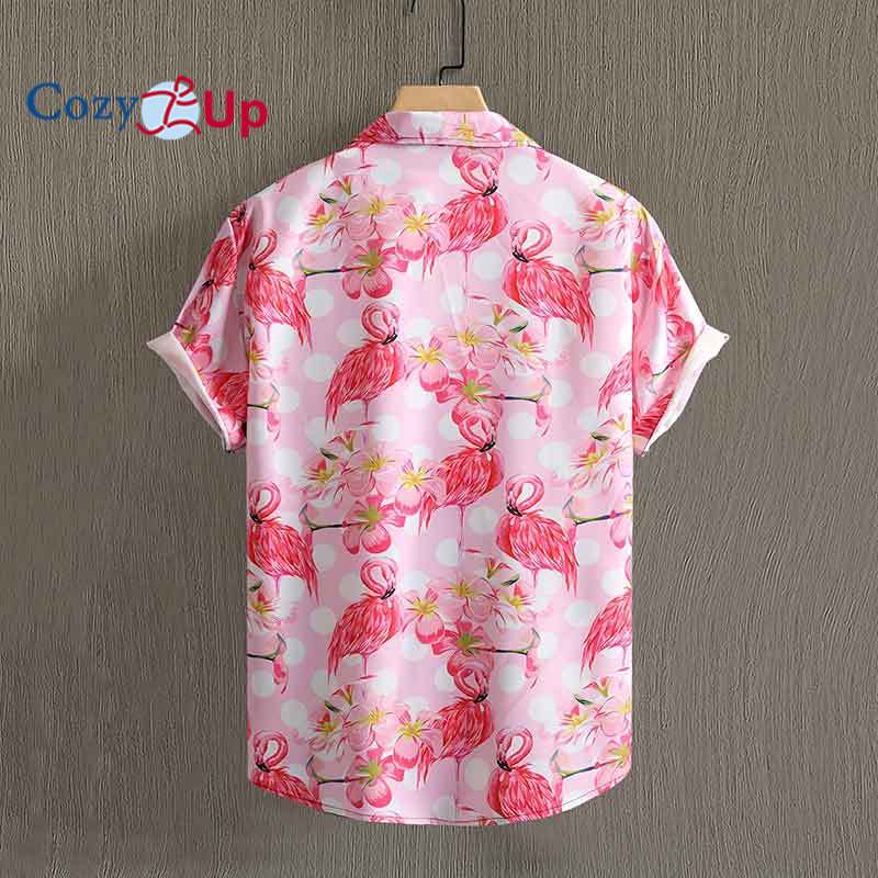 Повседневная рубашка с коротким рукавом с рисунком фламинго, мужская гавайская рубашка для летнего курорта