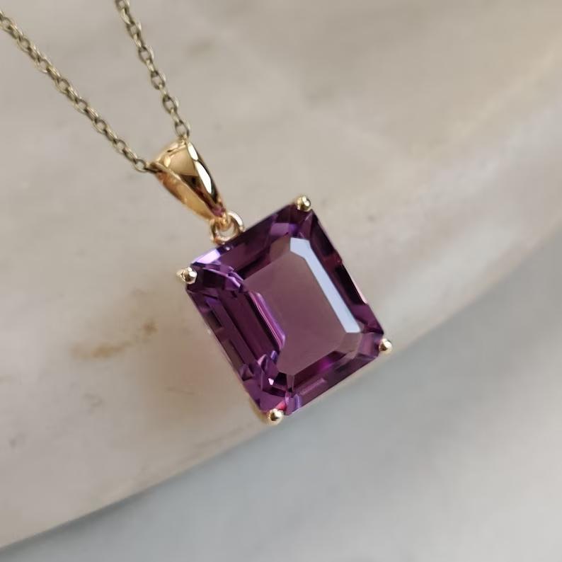 Подвеска с фиолетовым аметистом, февральский камень, рождественский подарок, аметистовый восьмиугольник