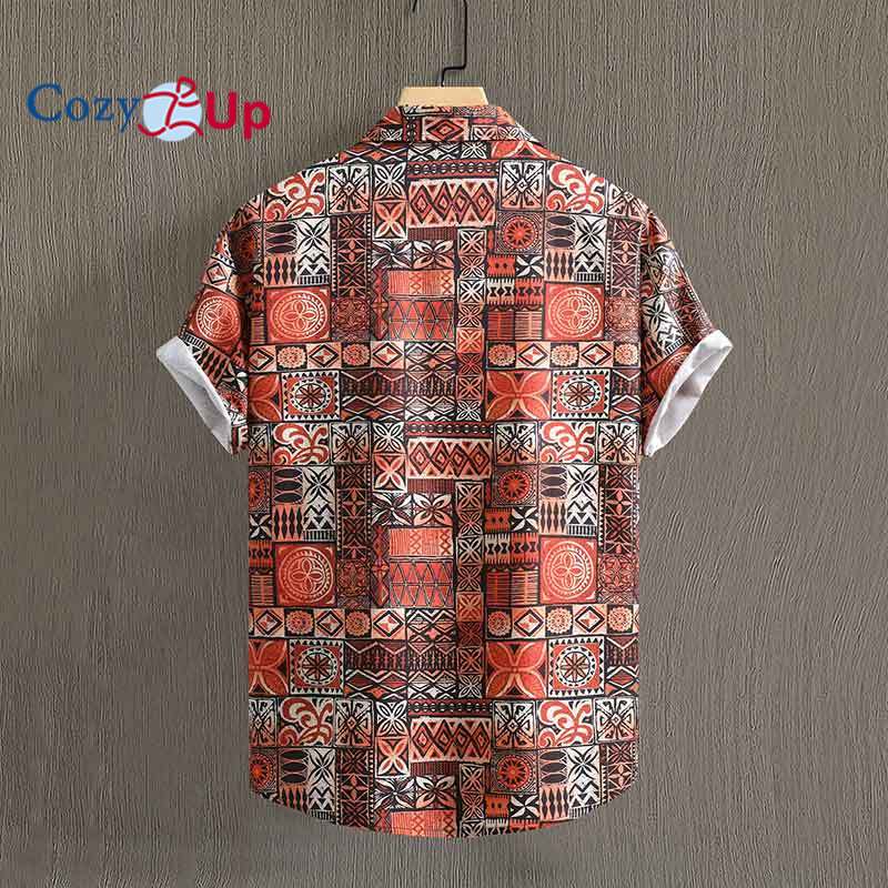 Летняя рубашка с принтом, мужская рубашка в этническом стиле, мужская рубашка с коротким рукавом на Ближнем Востоке в стиле ретро