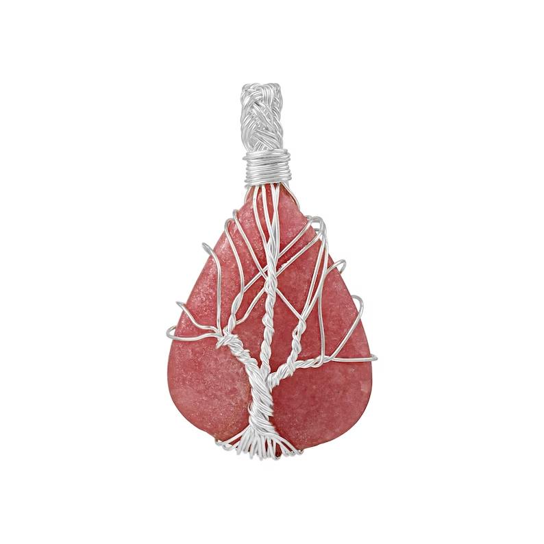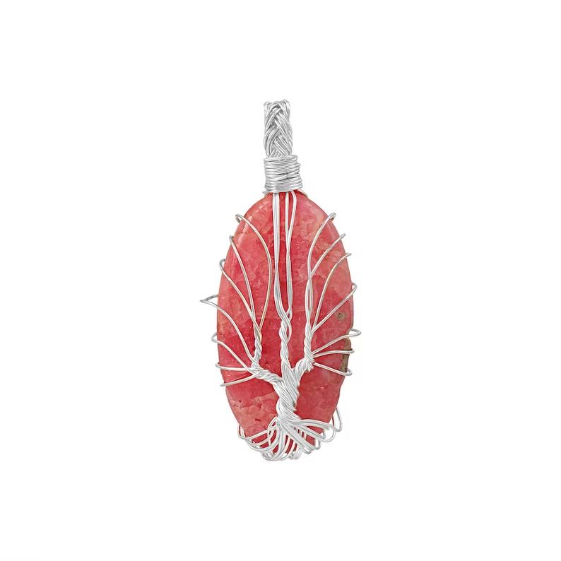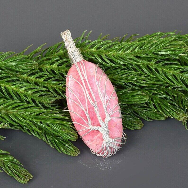 Кулон из натурального розового родонита, ожерелье из настоящего хрустального родонита