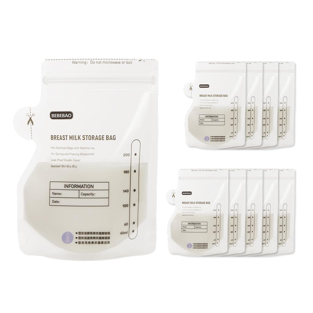 BEBEBAO одноразовые пакеты для хранения грудного молока, 200 мл, пакеты для хранения молока для грудного вскармливания, двойная молния