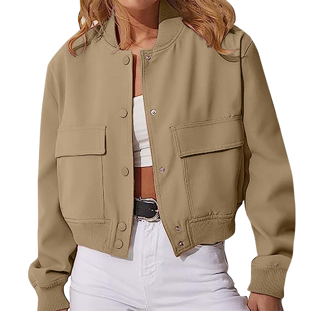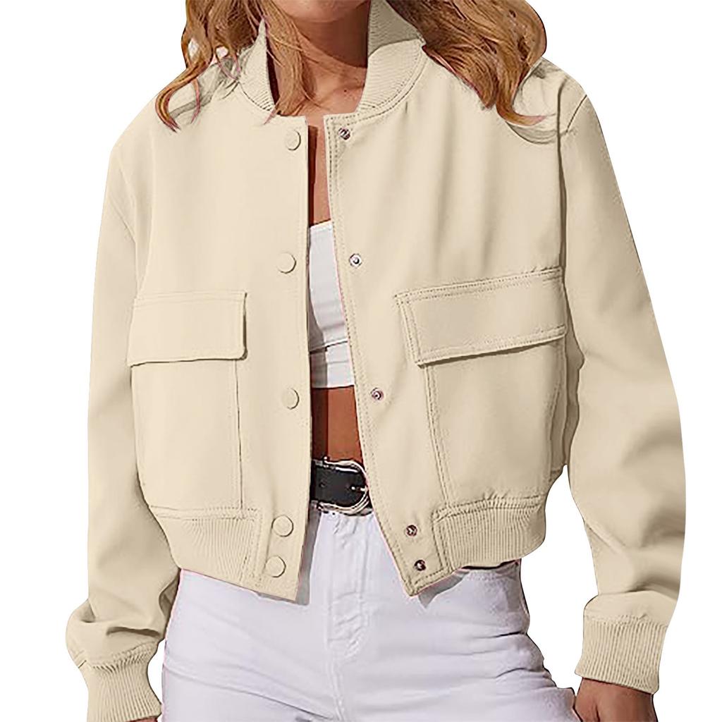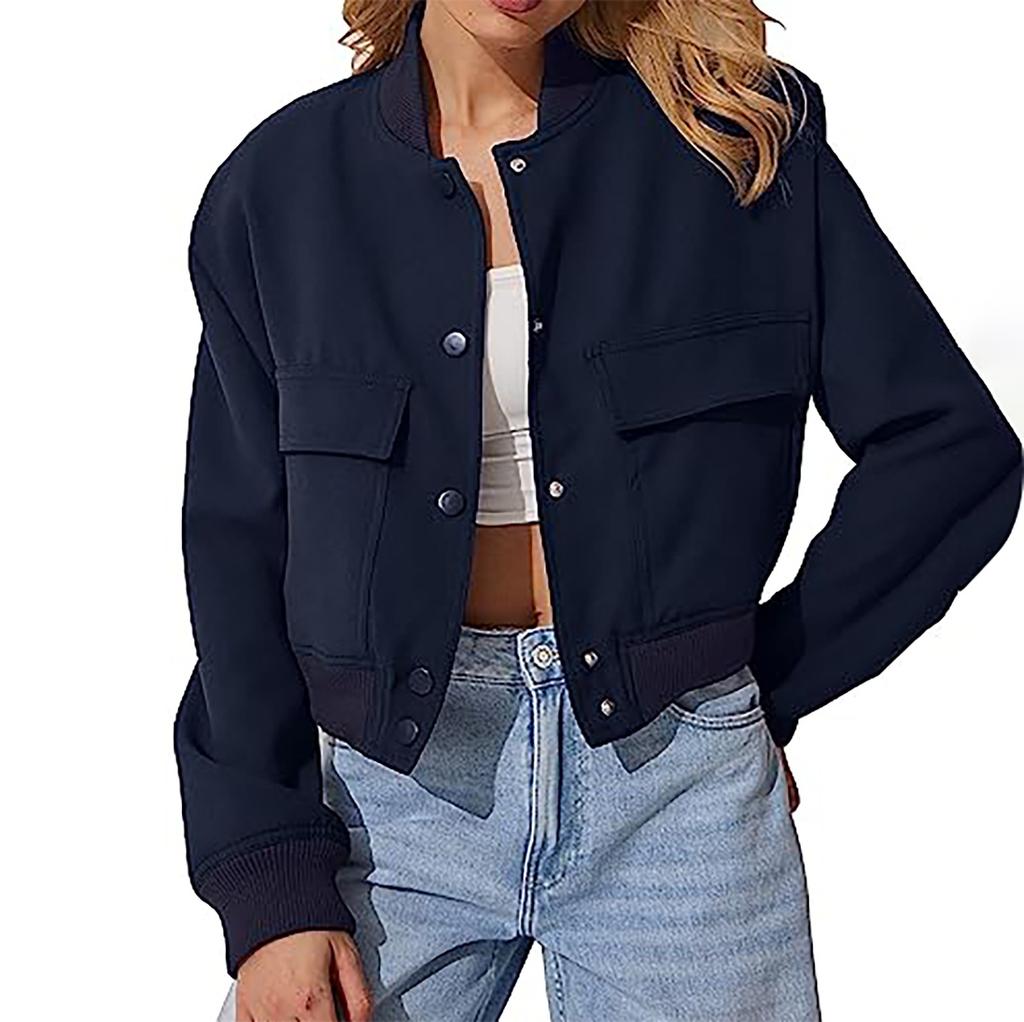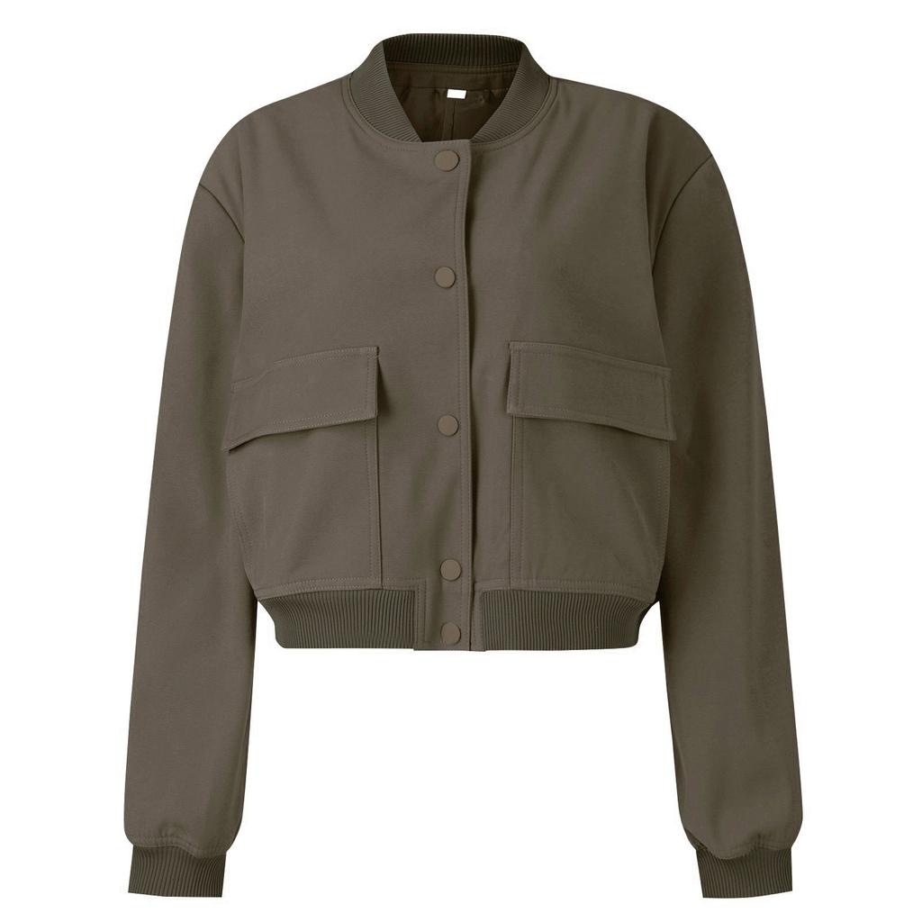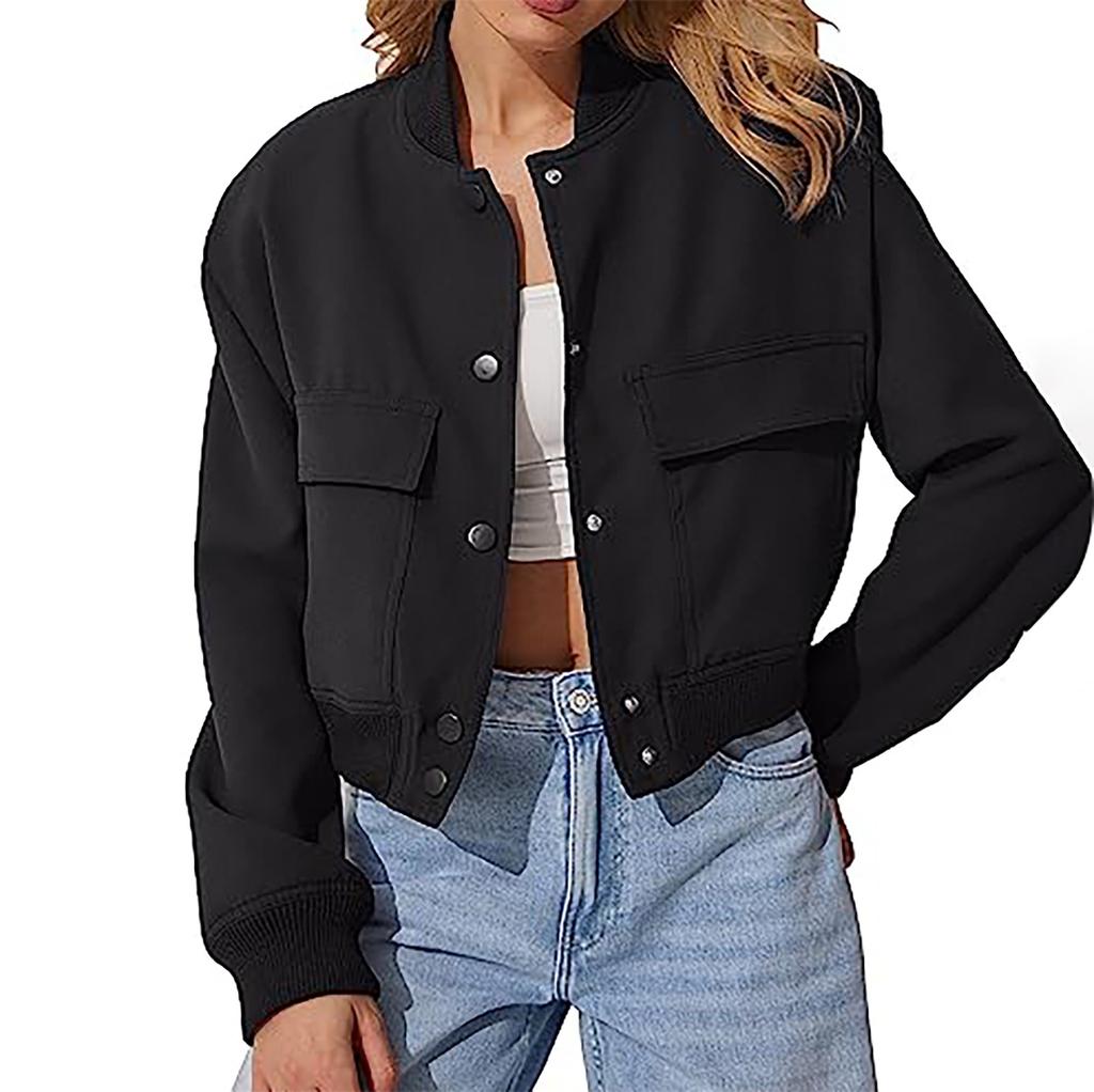 Модная женская однотонная мотоциклетная куртка с воротником-стойкой и двойным карманом, пальто с длинными рукавами