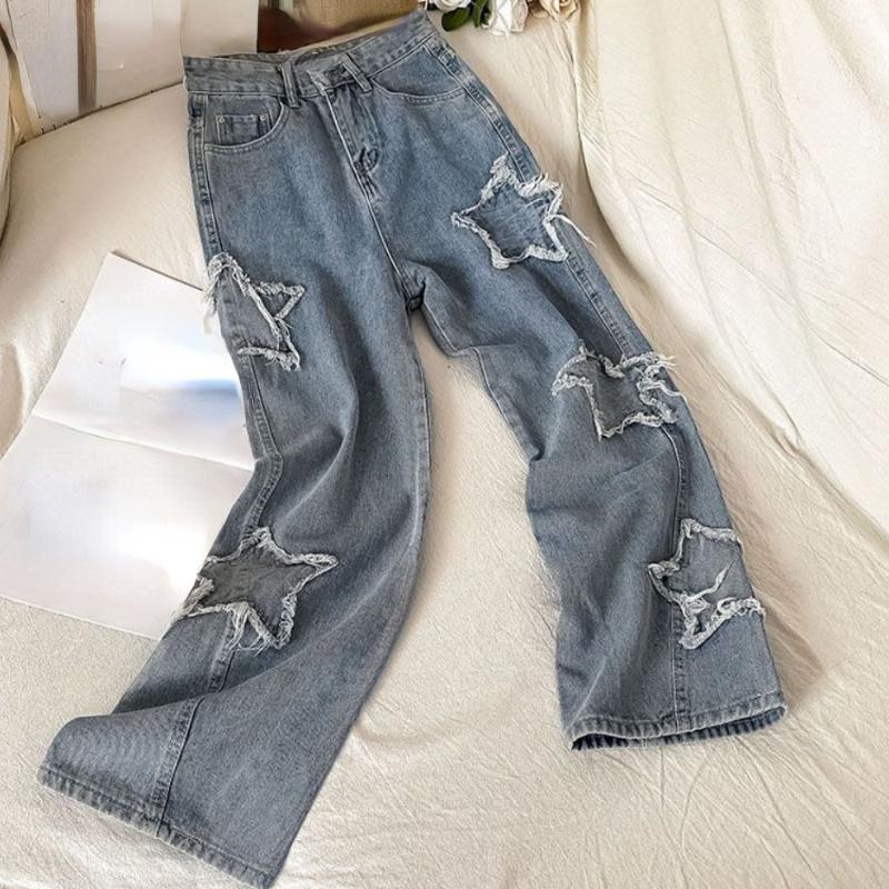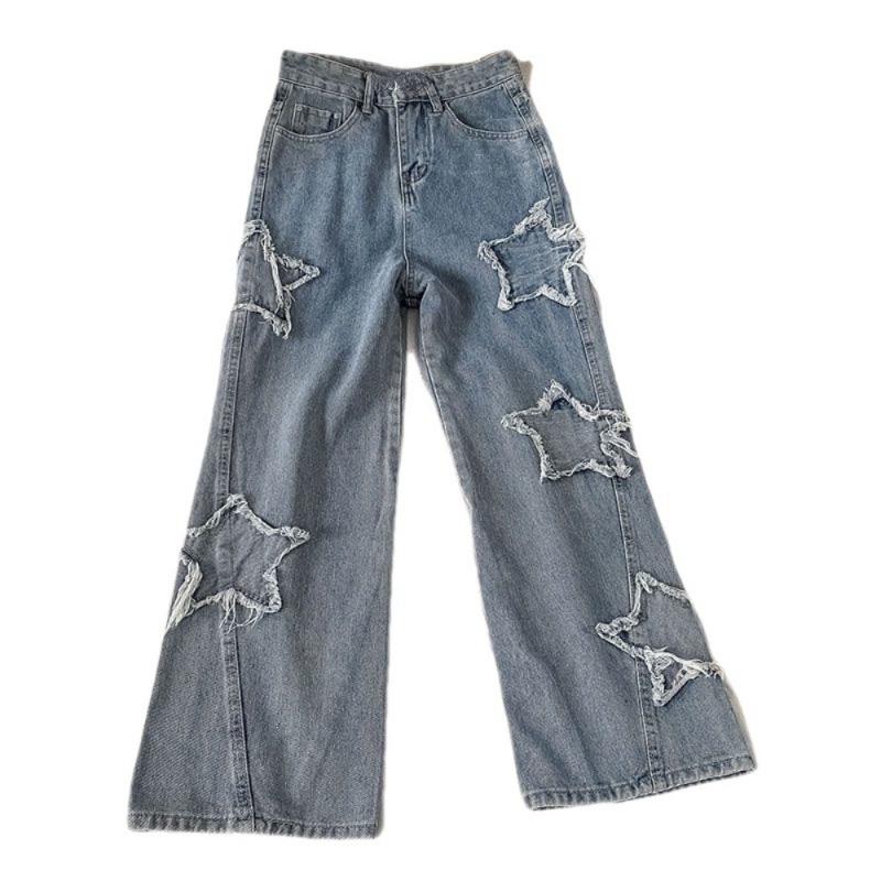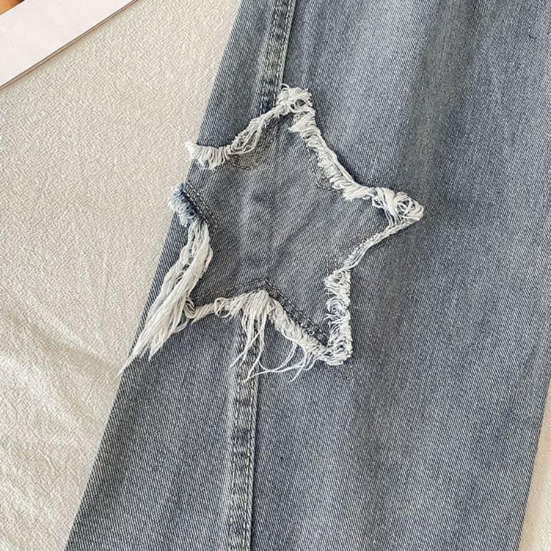 Джинсовые популярные Ins Fashion Корейский со звездой 2023 Весна Осень Новые прямые свободные джинсы с высокой талией