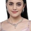 Что вы получаете:- Колье 1N с родиевым покрытием из американских бриллиантов в форме цветка и пейсли с заклепками и 2N (1 пара) Комплект украшений из сережек.
