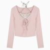Розовая милая и пряная футболка из двух предметов с длинным рукавом, женская ранняя осень в балетном стиле, облегающий короткий топ с бантом для пикантной девушки