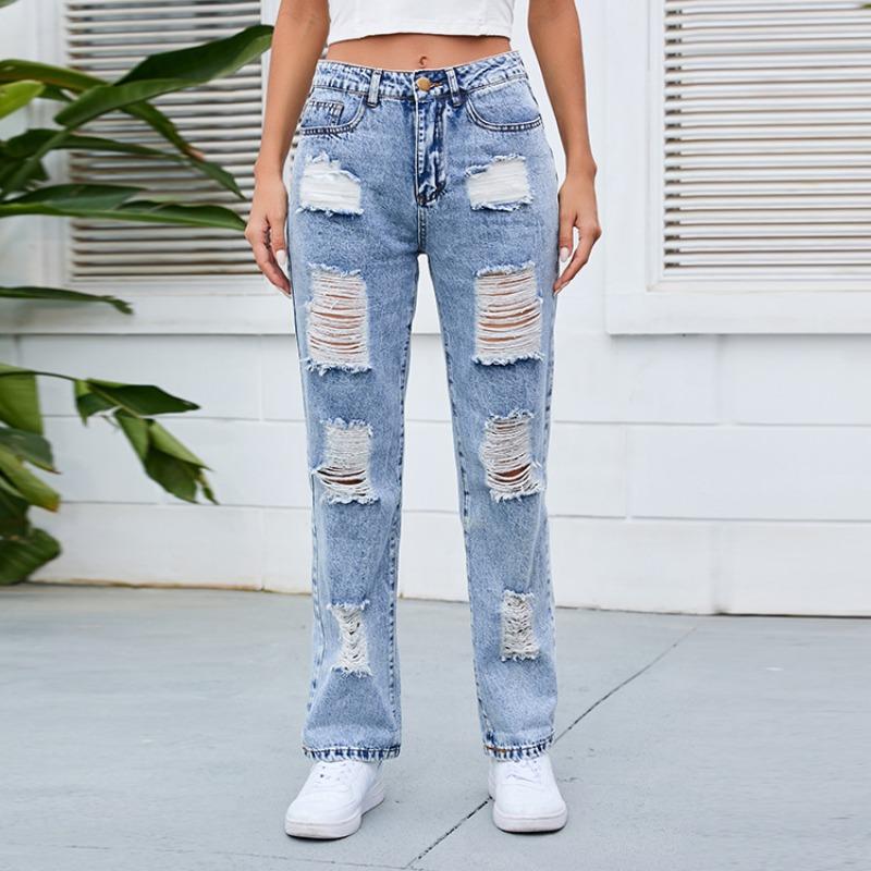 Винтажные синие повседневные джинсы со средней талией, женские стильные джинсовые брюки с дырками для женщин, элегантные однотонные офисные женские рваные джинсы, женская одежда 24121 — купить товар онлайн с бесплатной доставкой по всему миру!