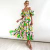 Летнее женское модное плиссированное платье без бретелек длиной до щиколотки с коротким рукавом и принтом