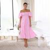 Летнее женское модное плиссированное платье без бретелек длиной до щиколотки с коротким рукавом и принтом — купить товар онлайн с бесплатной доставкой по всему миру!