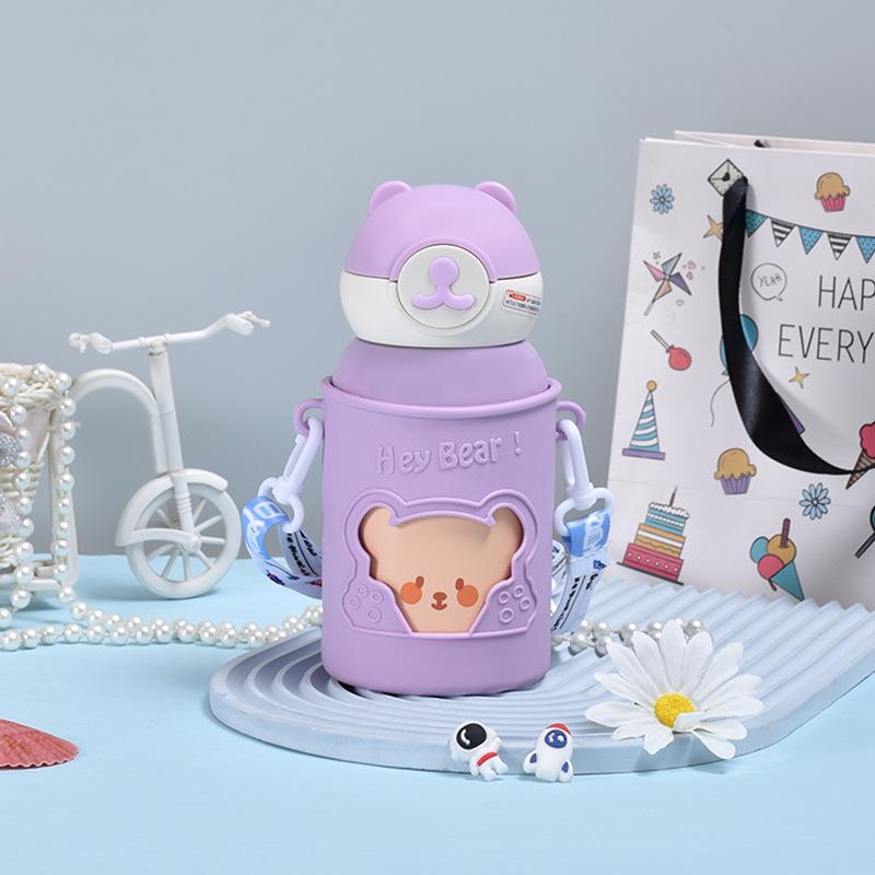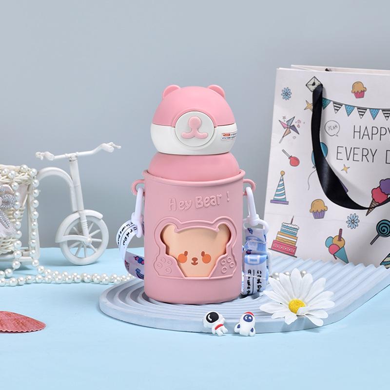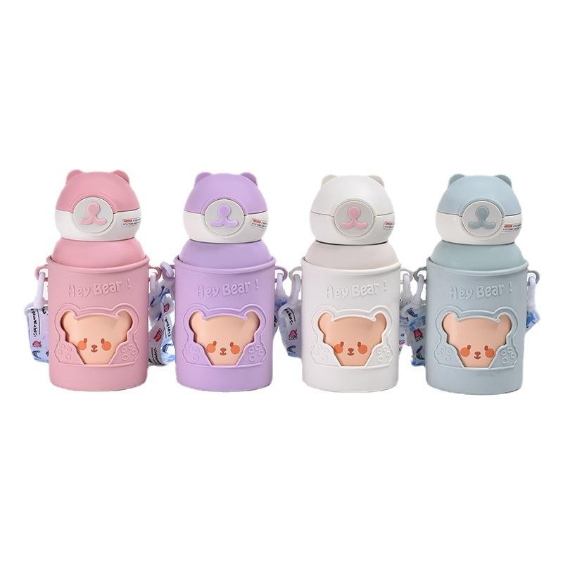 Детская вакуумная колба из нержавеющей стали 316, портативная присоска большой емкости, милый медвежонок, вакуумная прыгающая чашка