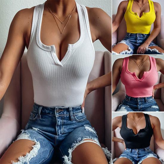 V-образный вырез без рукавов с простым и популярным однотонным рисунком.