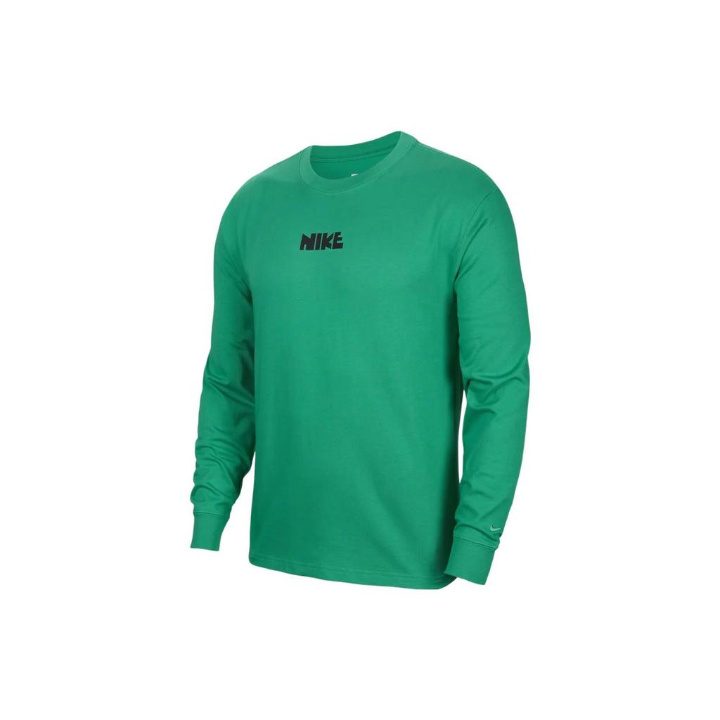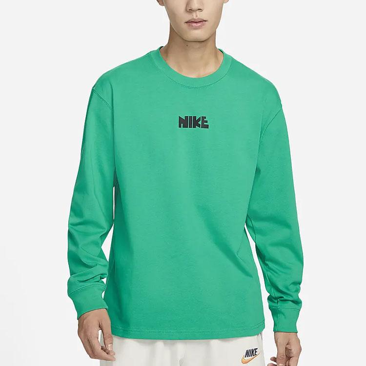 Nike Спортивная одежда Хлопковая футболка с длинным рукавом с вышивкой Мужские топы Зеленые FN0253-324