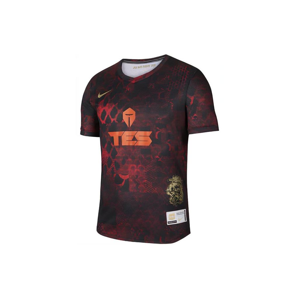 Nike LPL x TES Team Быстросохнущая повседневная футболка с принтом и короткими рукавами, мужские топы для фитнеса, красный DC6468-017