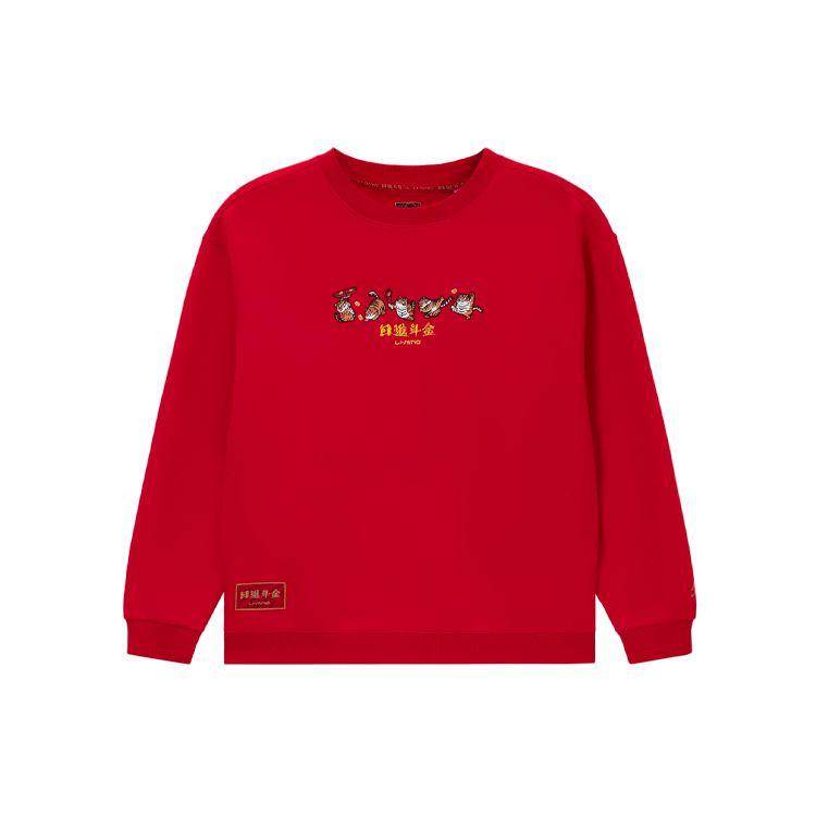 Подкладка Sports Trend Series Prosperous Gold Print Свободный пуловер с круглым вырезом Толстовка Топы унисекс Красный AWDS163-2