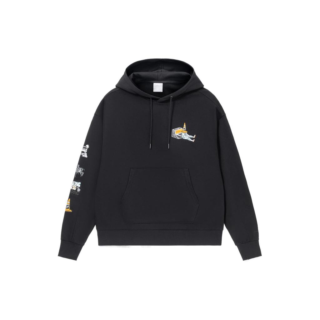 Li-Ning Скейтборд серии Fun Pattern Print Свободный пуловер с капюшоном Мужская толстовка с капюшоном Черный AWDS177-4