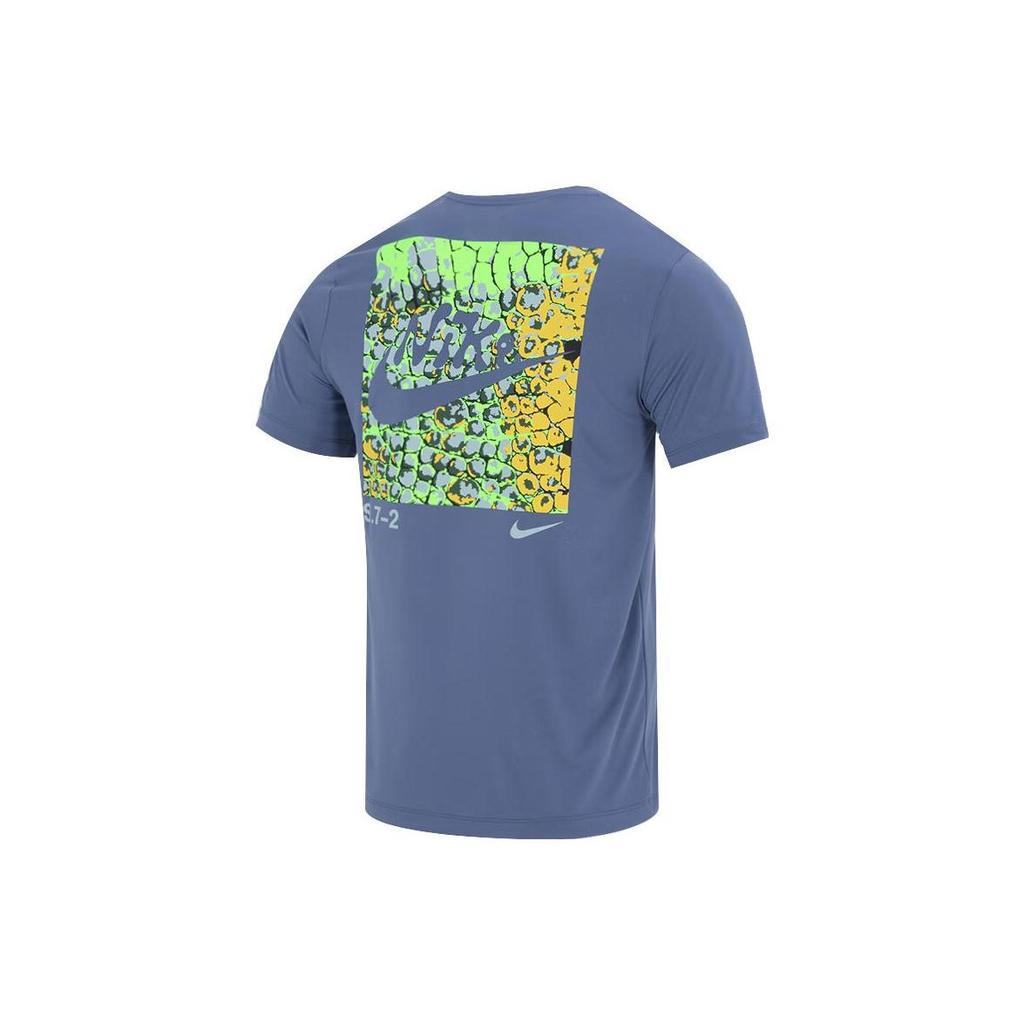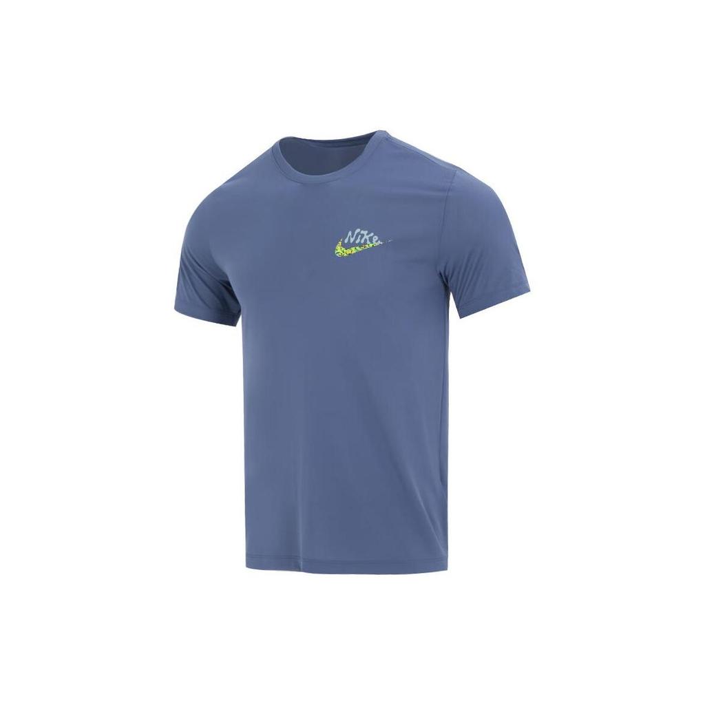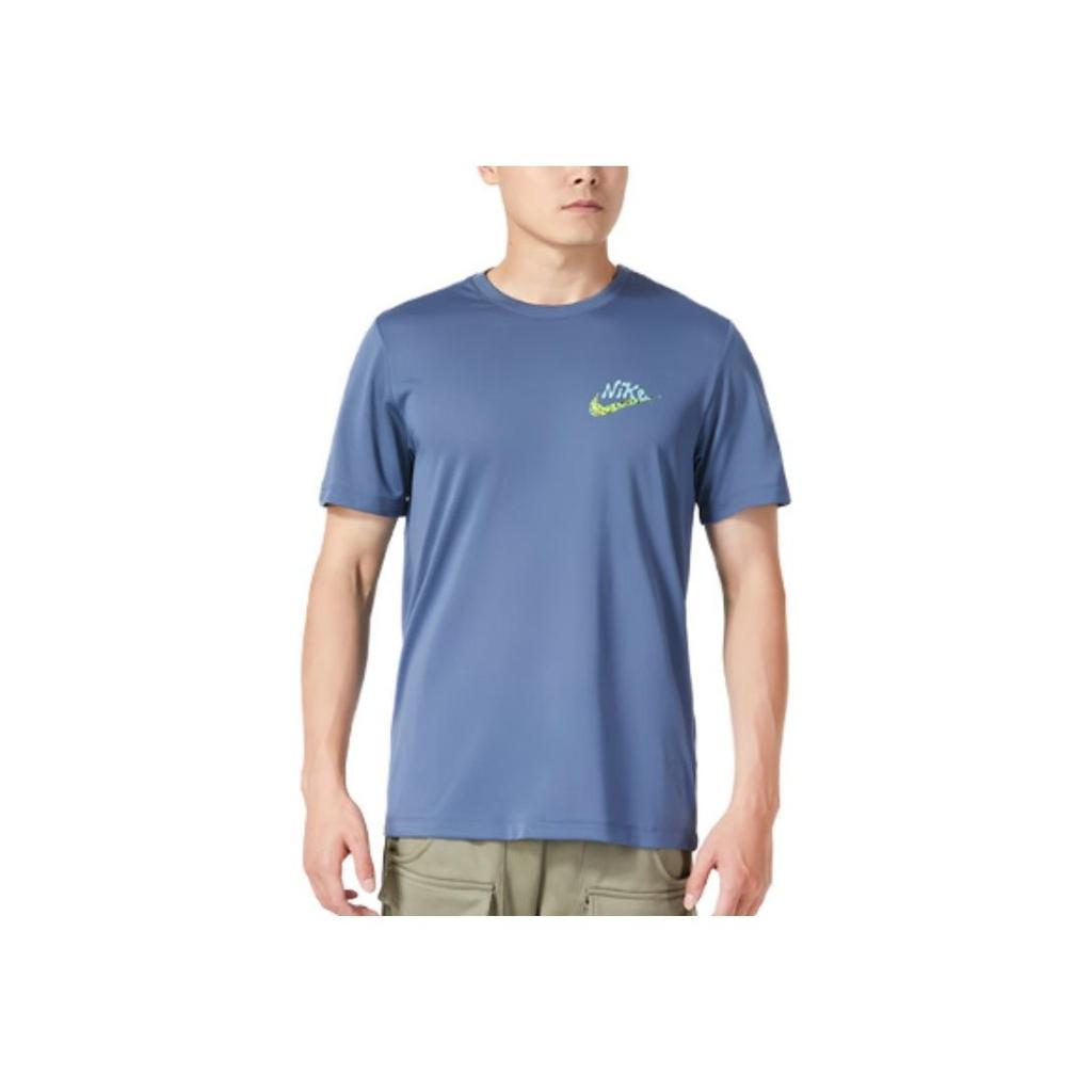 Nike Футболка мужская спортивная повседневная с коротким рукавом и принтом логотипа, дышащая, синяя FJ2372-491