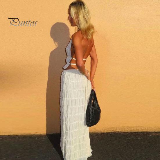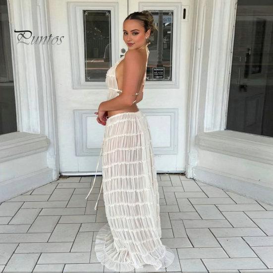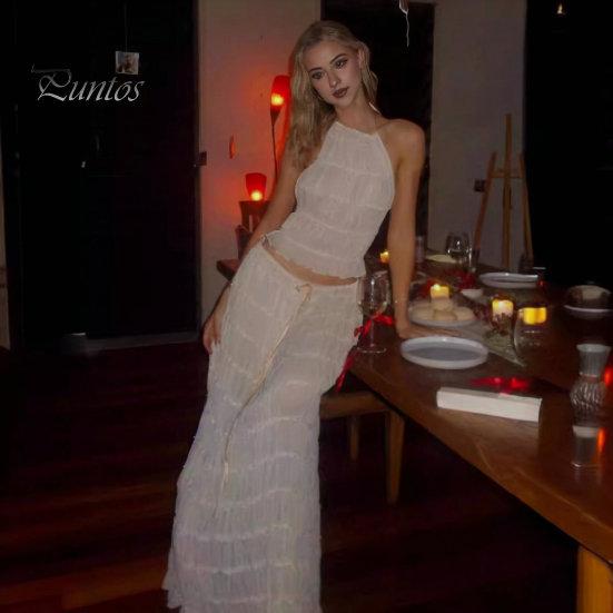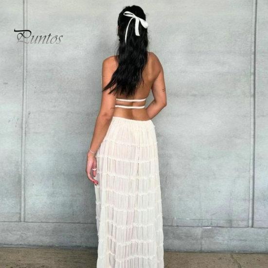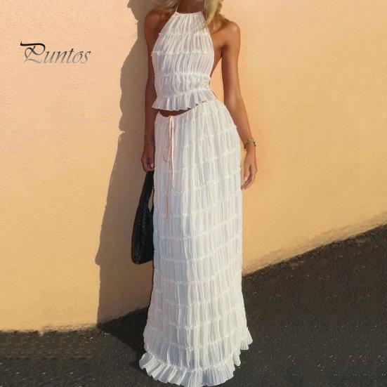 Подчеркните свой стиль с помощью этого потрясающего костюма с длинной юбкой. Этот комплект, изготовленный из смеси полиэстера и спандекса, включает сексуальный жилет и струящуюся длинную юбку, излучающие элегантность и очарование.. Ткань мягкая, эластичная и легкая, обеспечивает удобную посадку. Этот костюм идеально подходит для различных случаев, таких как активный отдых дома, шоппинг, прогулки на пляже, вечеринки и посиделки. Этот костюм универсален и шикарный. Пляжный сексуальный ремешок на шее с открытой спиной добавляет гламура, а плиссированные кружевные детали усиливают общий шарм.. Этот костюм идеально подходит для повседневной носки, прогулок по пляжу и особых мероприятий. Он незаменим для людей, следящих за модой. Имя элемента: Материал костюма с длинной юбкой: Полиэстер