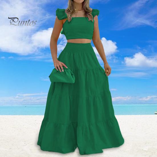 Материал: Этот повседневный женский костюм с макси-юбкой, изготовленный из смеси высококачественного полиэстера и спандекса, приятен для кожи и обладает превосходной эластичностью, обеспечивая комфорт в течение дня.
