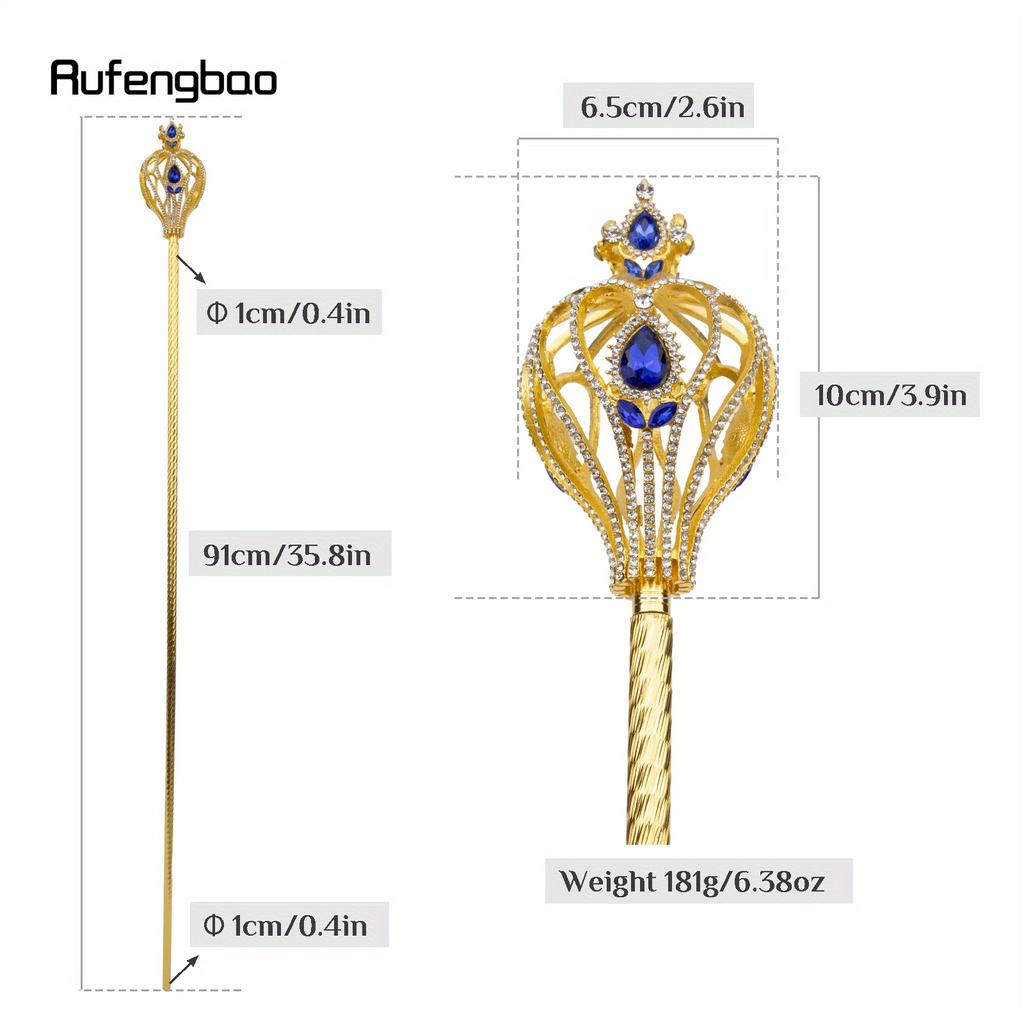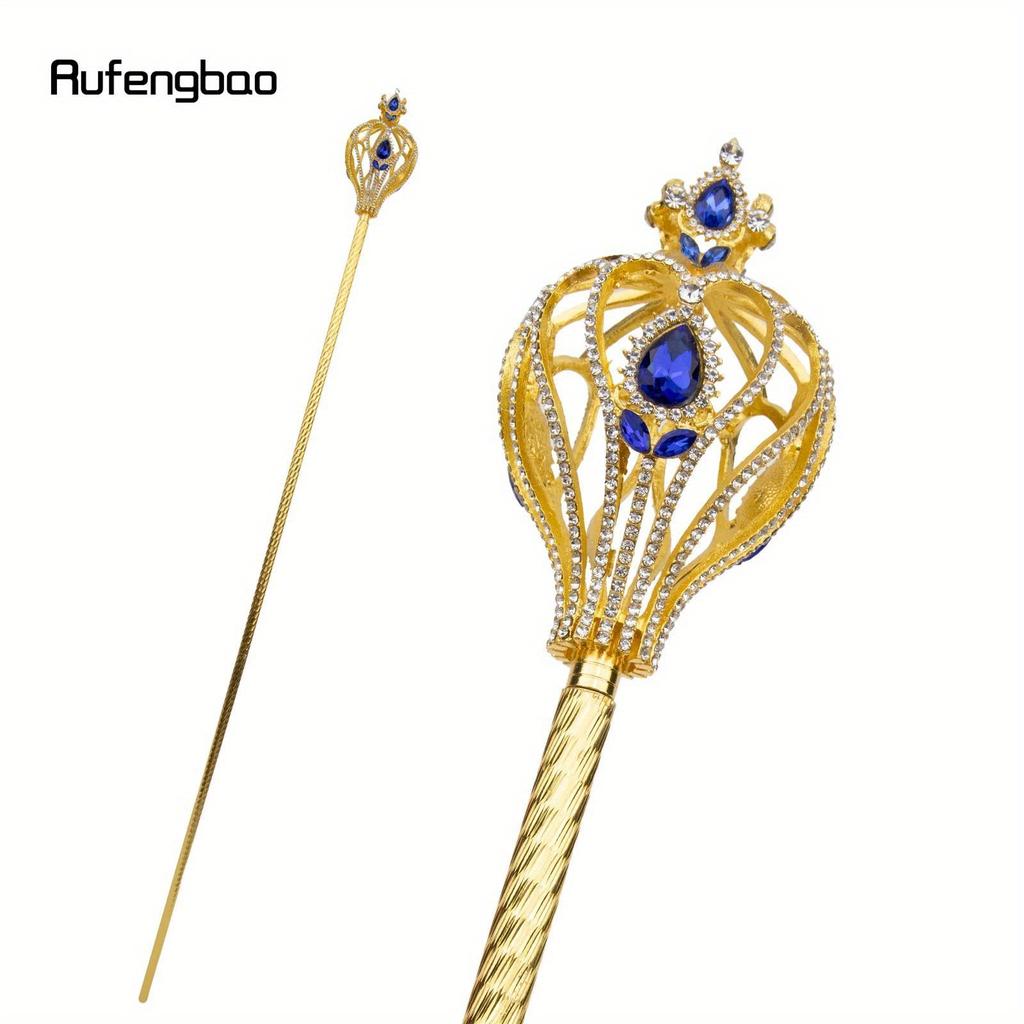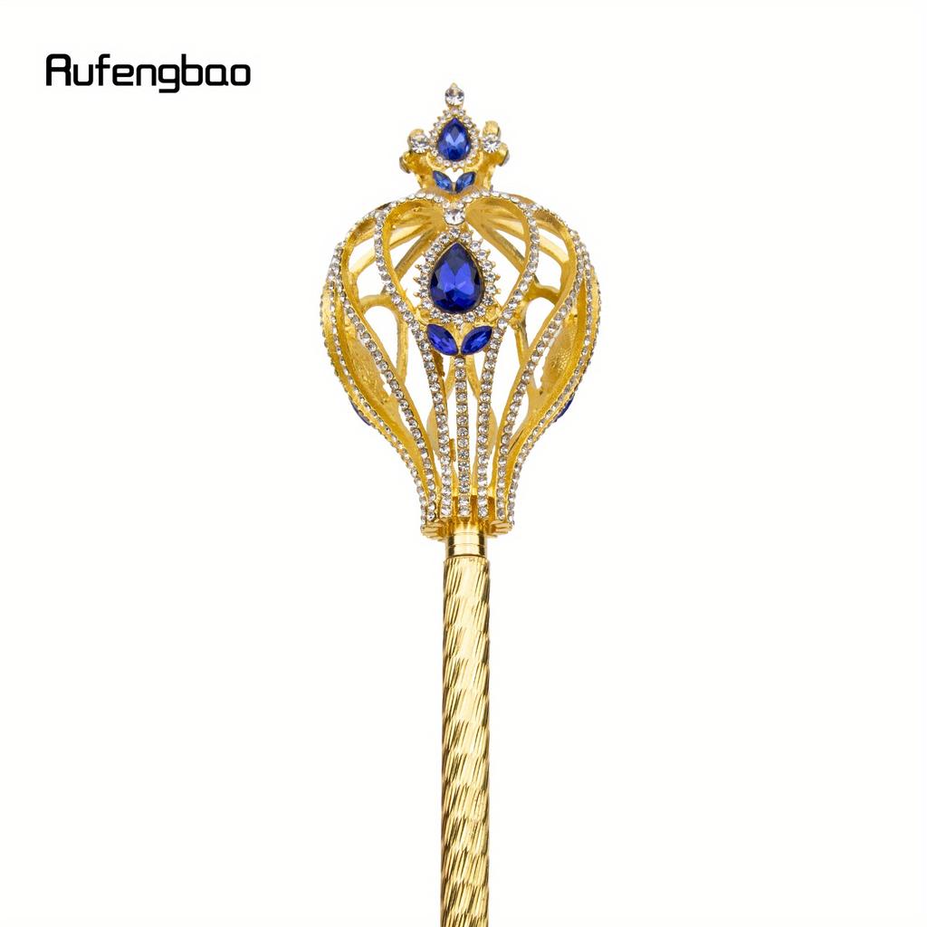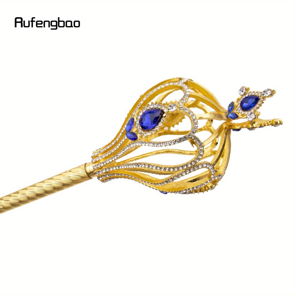 Элегантная золотая волшебная палочка Руфэнбао со стразами королевского синего цвета — идеально подходит для косплея, Хэллоуина, сцены и фотореквизита
