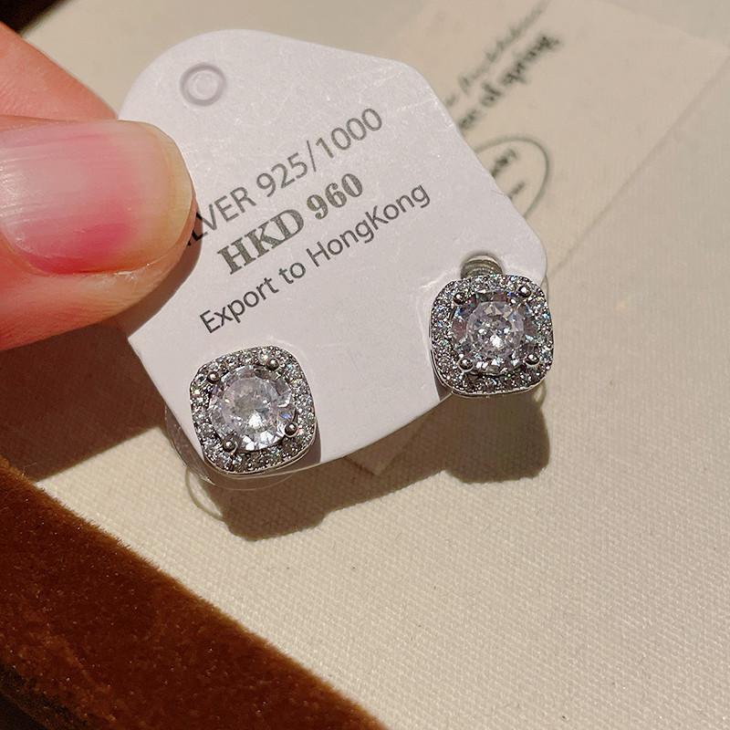 Серьги-гвоздики для женщин, пирсинг, квадратные серебряные серьги с кристаллами, модные аксессуары, ювелирные изделия