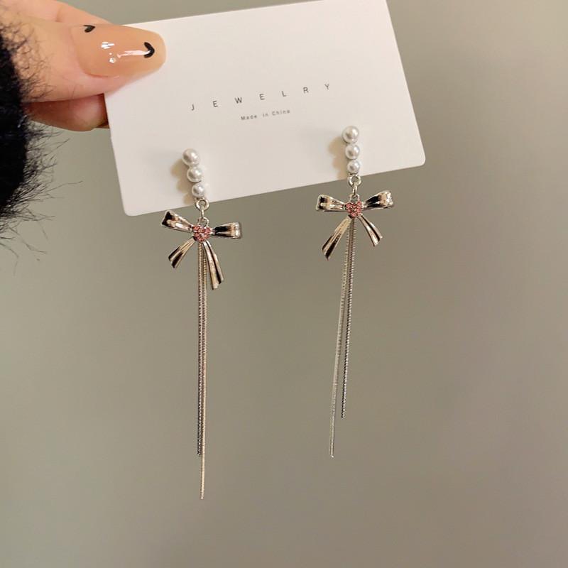 Элегантные серьги с кисточками и бантом для женщин, серьги с розовыми кристаллами, гипоаллергенные аксессуары, ювелирные изделия — купить товар онлайн с бесплатной доставкой по всему миру!