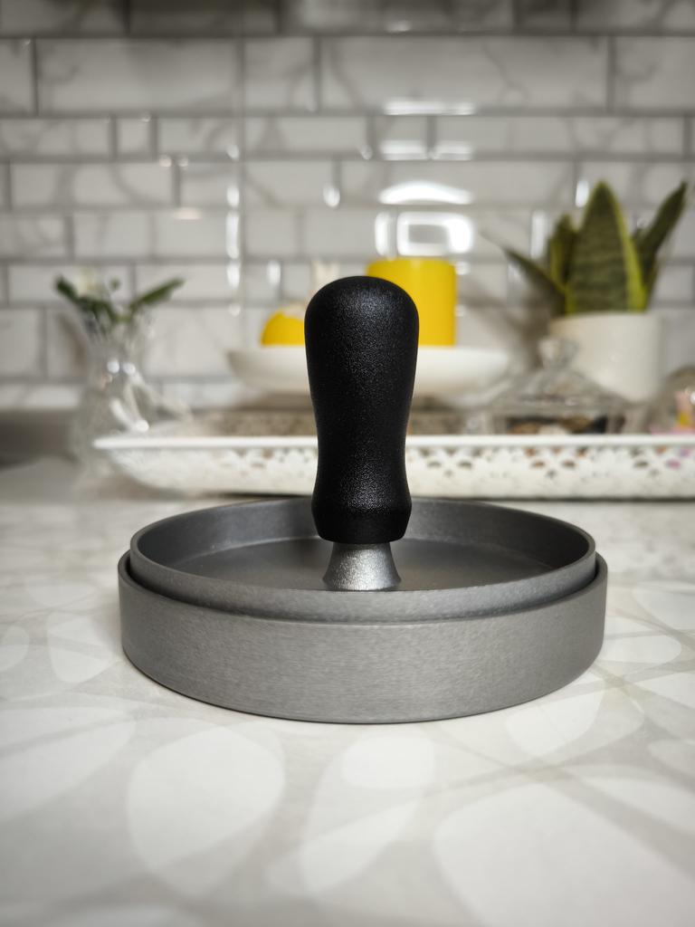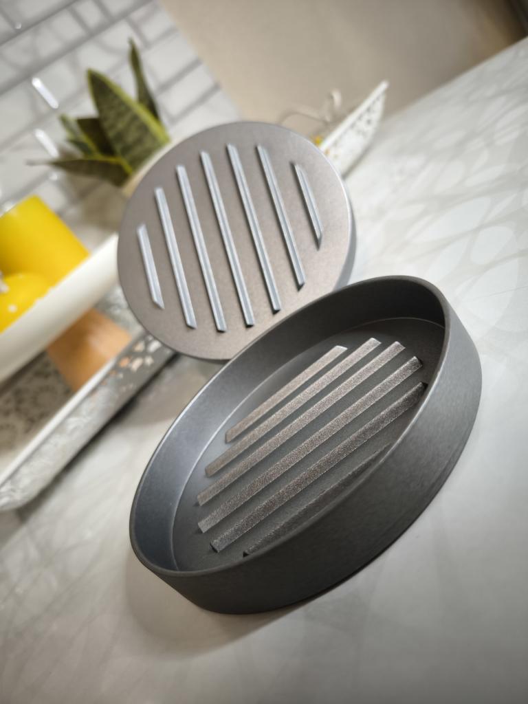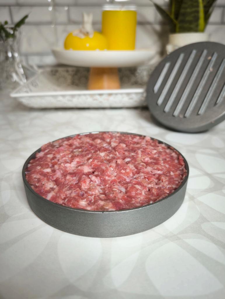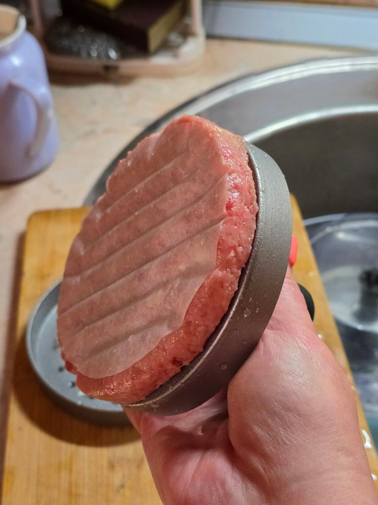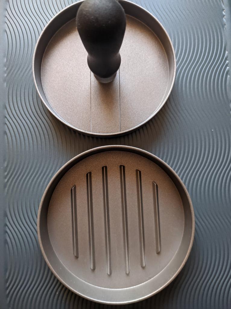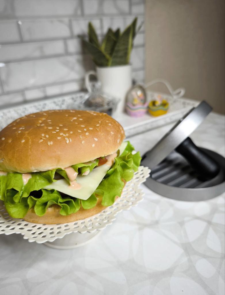 Пресс для приготовления бургеров Очень удобный девайс, я оценила. С ним все котлетки одинаковые и идеально ровные. В комплекте есть 100 листов пергаментной бумаги для лучшего извлечения котлеты из пресса. Но я обхожусь и без нее. Если очень хорошо вымесить мясо, оно неплохо выскакивает из пресса. Необходимо только зубочисткой провести по окружности котлеты, два раза хлопнуть и котлета вылезает из формы. Очень удобно и то, что этим прессом можно нажимать на котлеты чтобы они не сильно уменьшались в диаметре во время жарки. Чтобы котлеты были сочными я использую фарш ассорти, добавляю чеснок, соль и перец. И очень хорошо вымешиваю его. Булочки будут вкуснее если вы их немножко поджарите на сковородке. Если булочка влезает в тостер, я их там и припекаю. У меня на фото булочки XL, поэтому котлетка кажется маленькой по отношению к ней. Диаметр пресса 11 см. Изготовлен из алюминия. Ручка - пластик. Рекомендую 🤗