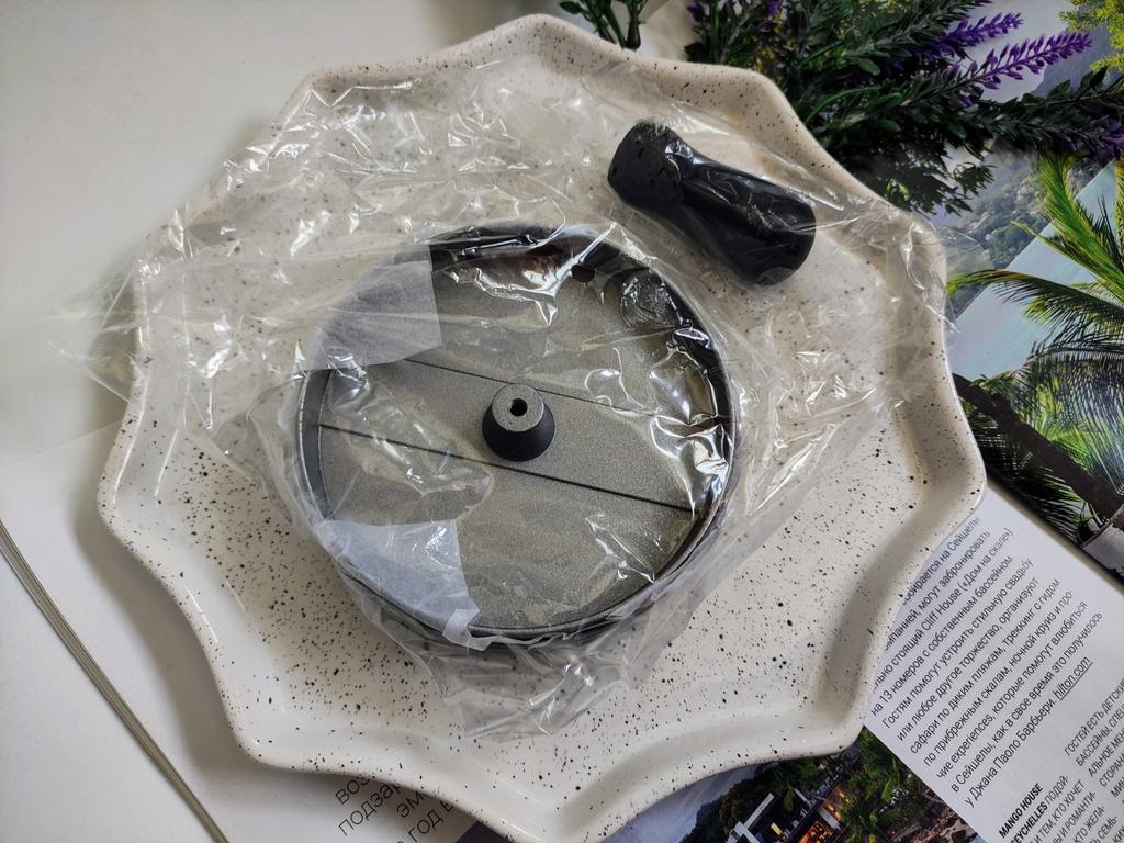 Пресс для котлет. Очень удобно, если вы любите гамбургеры. Котлетки получаются идеальными! Нужно лишь сделать правильный фарш и хорошенько его вымесить. Пресс приходит в очень красивой цветной коробочке из плотного картона. Ручка лежит отдельно, её нужно прикрутить. Пресс тяжёленький, качественный. В комплекте идут круглые вкладыши из пергамента, в количестве 100 штук. Ими удобно перекладывать котлетки при заморозке. Я их не замораживала, использовала вкладыш при формовке котлет (чтобы легко доставались из пресса). По краю проводила зубочисткой, доставала, бумагу использовала повторно. Котлетки жарила на гриле. Очень удобное приспособление, котлеты получаются аккуратными и красивыми. Рекомендую