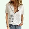 Женская модная футболка с воротником с лацканами, летняя и осенняя повседневная футболка с принтом, женский хлопковый льняной кардиган с принтом, блузки с короткими рукавами — купить товар онлайн с бесплатной доставкой по всему миру!