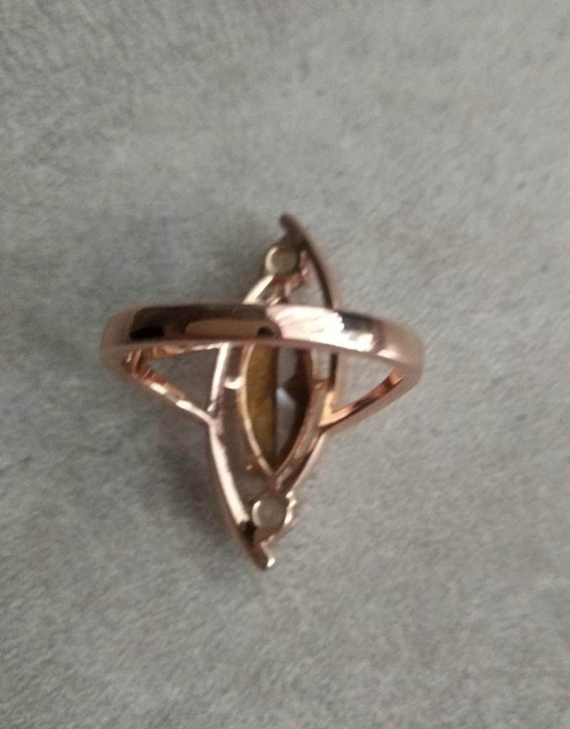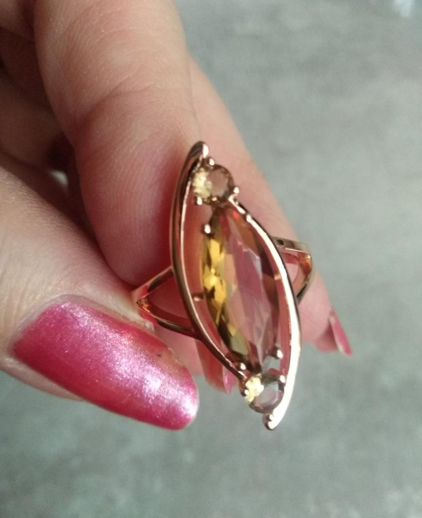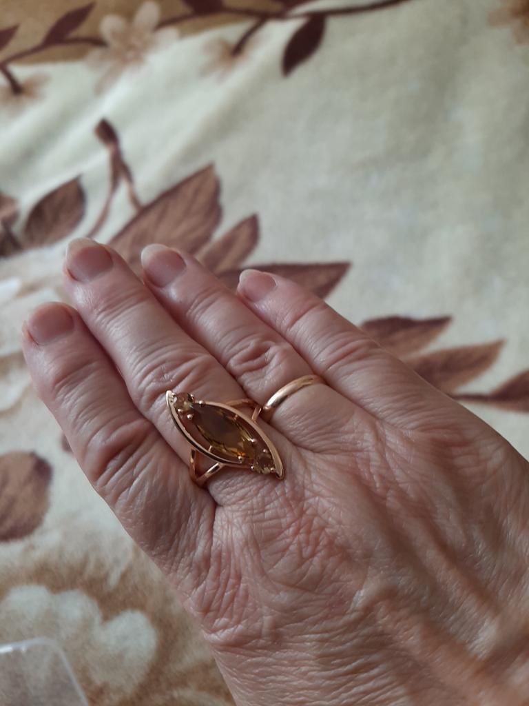 Кольцо с цирконом темно-коричневого чайного цвета под золото, размер 9 соответствует 19 размеру. Покупала для комплекта к таким же серьгам, но хорошо подходит и к другим. Несмотря на казалось бы крупноватую вытянутую форму, на руке смотрится отлично, и это радует каждый раз, как одеваю и любуюсь. Покупкой очень довольна, рекомендую.